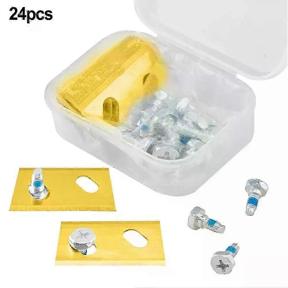 Features: *Mowerblades with a cutting edge for greater longevity, outlasting non-coated steel blades. Suitable for FOR Robomow Robotic Mower. *Made of strong stainless steel, the lawn robot blade is highly resistant to breakage, even when encountering hard items such as stones, ensuring safety during . *Equipped with a edge and two blades, the lawn robot blade delivers highly efficient cutting performance, reducing the need for frequent blade changes and improving al efficiency. *Good material provides the lawn robot blade with not only a stylish appearance, but also enhanced durability and wear resistance. Featuring higher hardness, a smoother , and better anti-shooting ability, it offers an improved user experience. *Includes 24 lawn mower replacement blades suitable for FOR Robomow robots. Please verify compatibility before placing an order. Specifications: *Product Name: 24 Pieces Lawn Robot Blade * Material: Stainless Steel *Size:32*18.6*0.9mm *Color: Silver, Gold *Fitment: For FOR Robomow RK Robotic Mower *Number of Pieces: 24 Package Content: 24* Lawn Robot Blade 24* screws Note: 1. The real color of the item may be slightly different from the pictures shown on website caused by many factors such as brightness of your monitor and light brightness. 2. Please allow slight manual measurement deviation for the data. _x000D_ _x000D_ Due to differences in shooting equipment, displays, and production batches, the product may have slight color differences. This is normal, please refer to the actual product. We have tried our best to restore the true color through professional equipment, but we still recommend that you watch it under natural light for the most accurate visual effect.