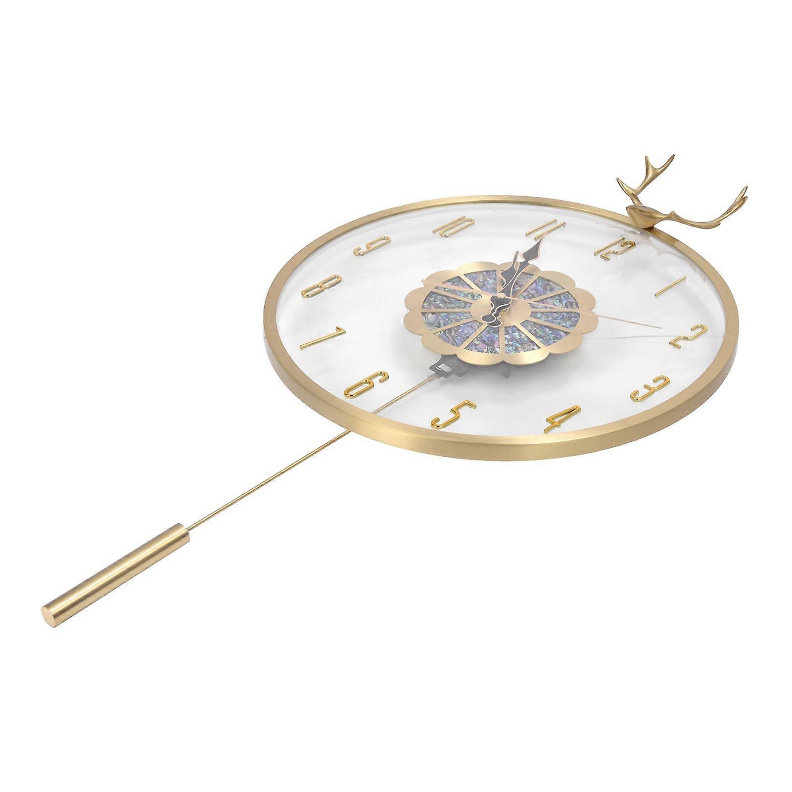 Deer Head Wall Clock Copper Art 42x34cm for Living Room Decor