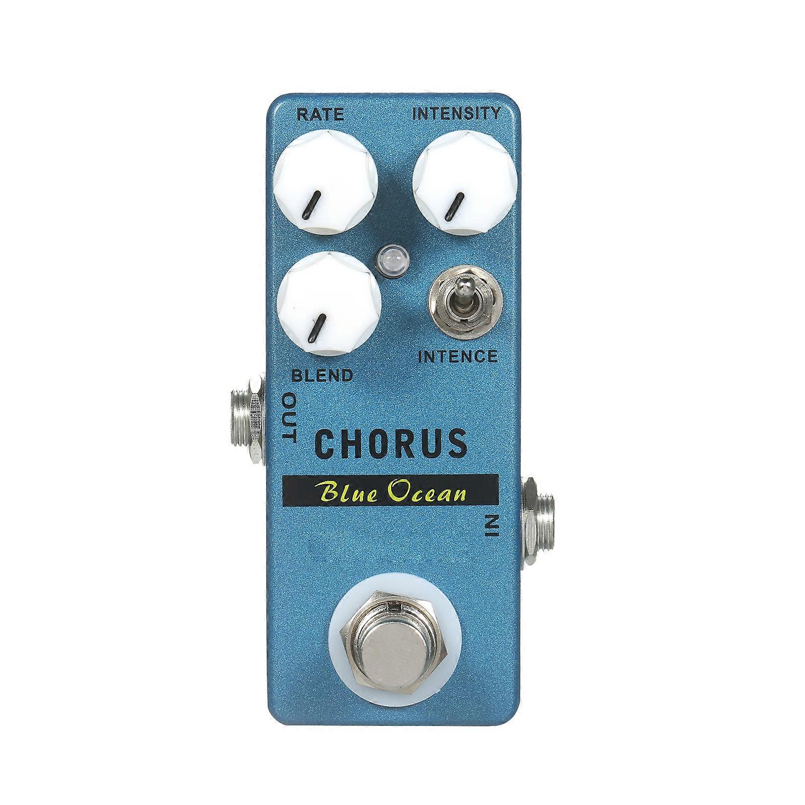 MOSKYaudio Blue Ocean Chorus Guitar Effect Pedal Chorus/True Bypass Rate + Blend + Intensity + Intence True-Bypass Switching Circuit: True bypass means that when the effect is off your guitar tone will not be affected at all. The true bypass circuit makes sure you have absolutely no tone loss or signal reduction through the chorus pedal in the off/bypass mode. Features: Three knobs + one toggle switch, wide adjustable range. RATE: This is a control for setting the speed of the internal oscillator. BLEND: This is a control for setting the mix of the modulated and the dry sound. Turn it up for a more intense effect. INTENSITY: This is a control for setting modulation depth. Turn it up for a deeper effect. INTENCE: two modes to choose Specifications: Model: BLUE OCEAN CHORUS Material: Metal Color: Blue Power Supply: DC 9V, Center negative Current Consumption: 40mA at 9V DC Input Impedance: Approx. 400KΩ Output Impedance: Approx. 2KΩ Item Size: Approx. 93*52*47mm / 3.66*2.05*1.85in Item Weight: Approx. 147g / 5.19oz Package Size: Approx. 11.3*6.3*6.3cm / 4.45*2.48*2.48in Package Weight: Approx. 184g / 6.49oz Packing List: 1 * Guitar effect Pedal