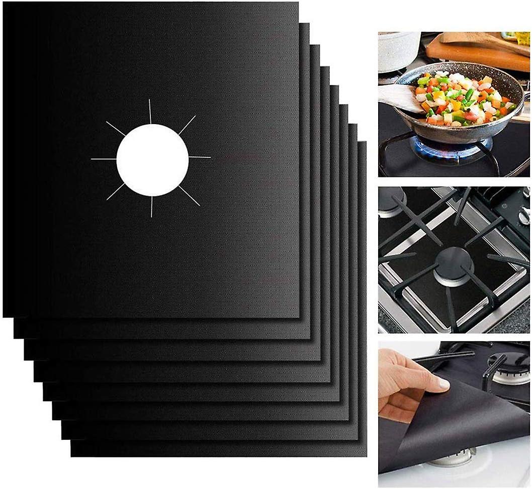 <p>Material: Teflon fabric, non-toxic. Size: 27x27CM. Thickness: 0.12mm. Withstands temperatures up to -70~260°C.</p> <p>Practical: These protectors are easy to cut to the right size, stay in place on the stove and withstand temperatures up to 260°C. The protector sheets are not 100% fireproof. Avoid direct contact with fire.</p> <p>Function: Prevent grease from accumulating on the surface of the gas stove during cooking. You can easily remove grease and stains from the stove surface. This can be used repeatedly.</p> <p>Easy to clean: Can be easily removed when cleaning. Easy to clean. Wash with warm soapy water or dishwasher - fully reusable.</p> <p>Great Value: Practical household tools to protect your stove from oil spillage on the surface. With this gas stove burner liner, you will love your cooking without any mess. And make your stove fresh as new!</p> <p>Package:</p> <p>8 Pack Stove Burner Covers</p>