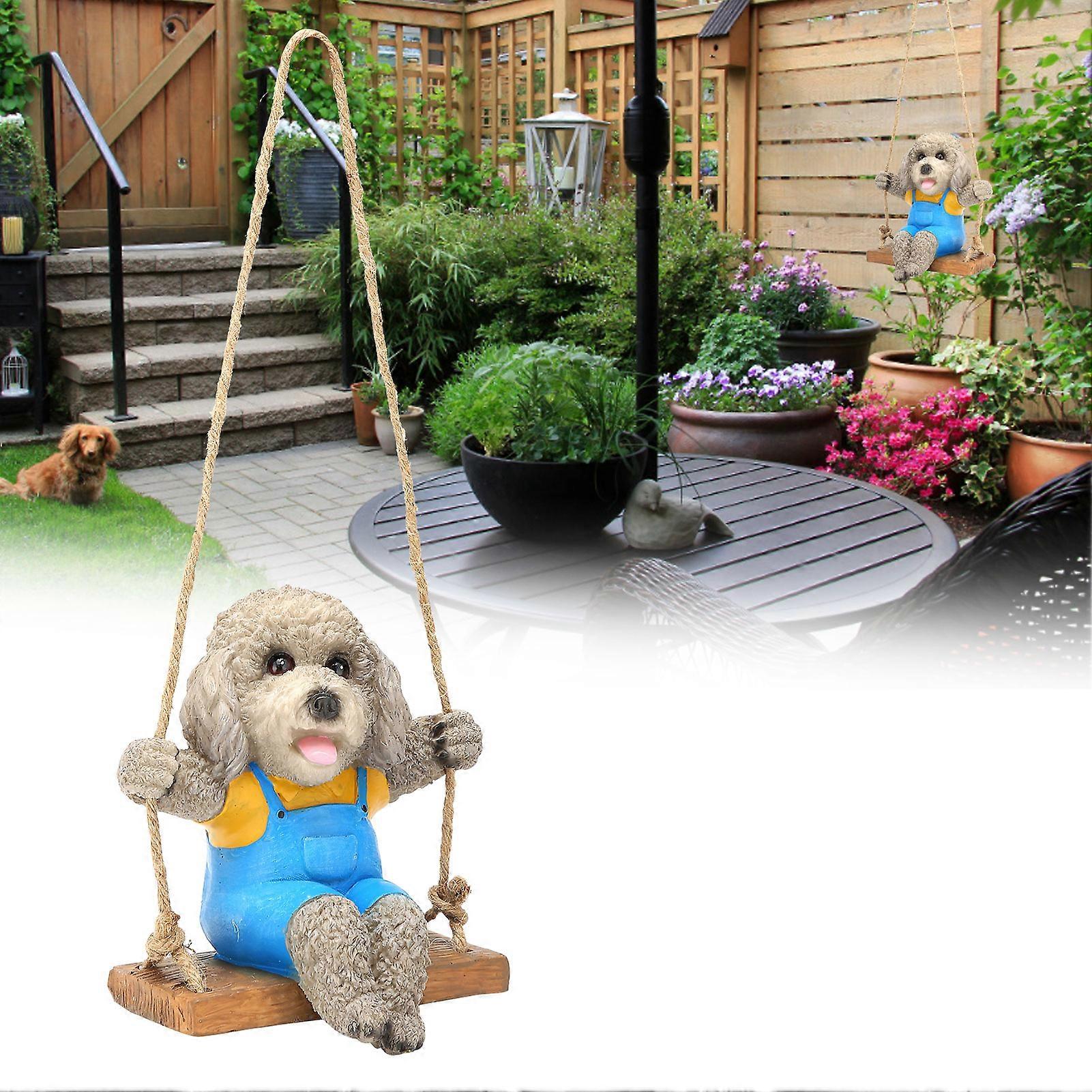 Gray Teddy Dog Hanging Pendant Resin Statue 15.5x12x17cm Garden Decor