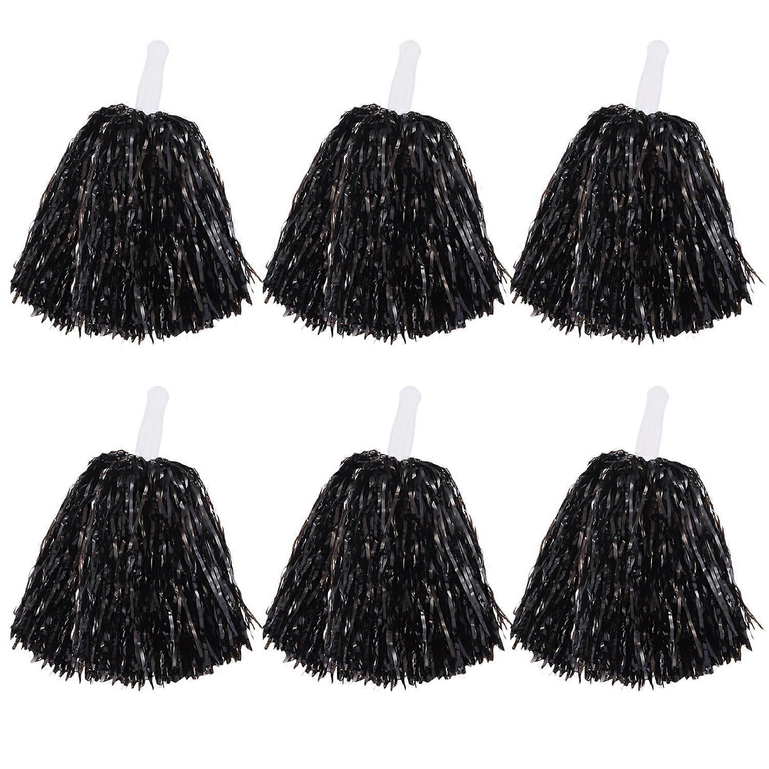 6pcs Cheerleading Poms Metallic Foil Pompoms for Sports Events Competition Holiday Celebration Black for Kids and Adults