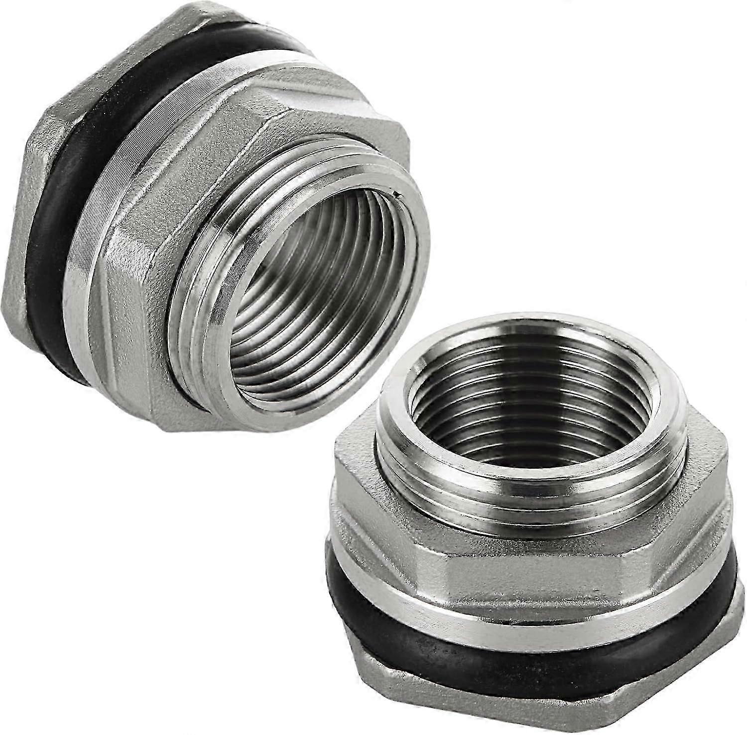 2 Pcs 1 Inch Bulkhead , 304 Stainless Steel Female Double Threaded Bulkhead Water Tank Con (PrettyJ)