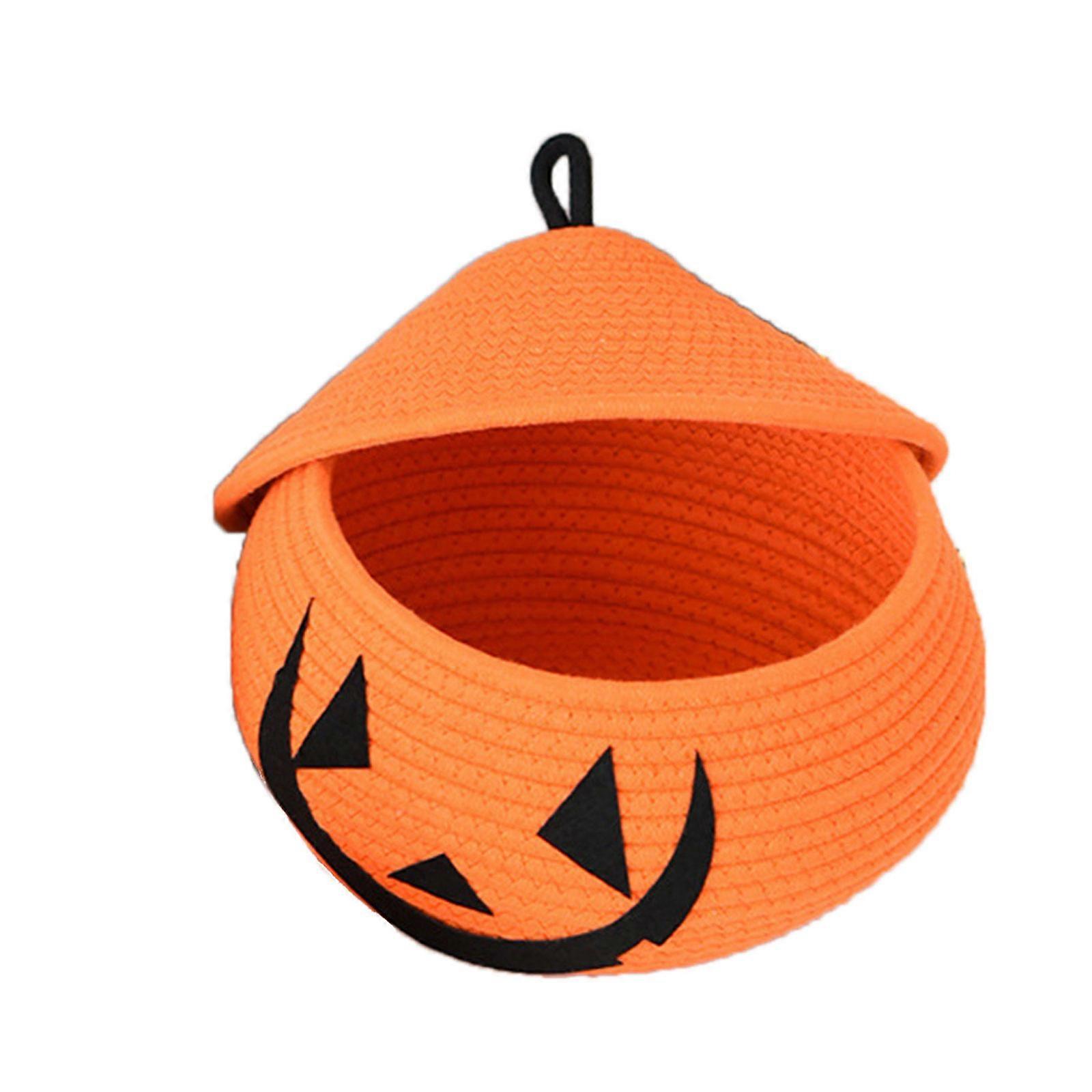 Decorative Handwoven Cotton Basket Pumpkin Designs Dustproof Lid Tabletop Storage Box For Festival Decorations XL