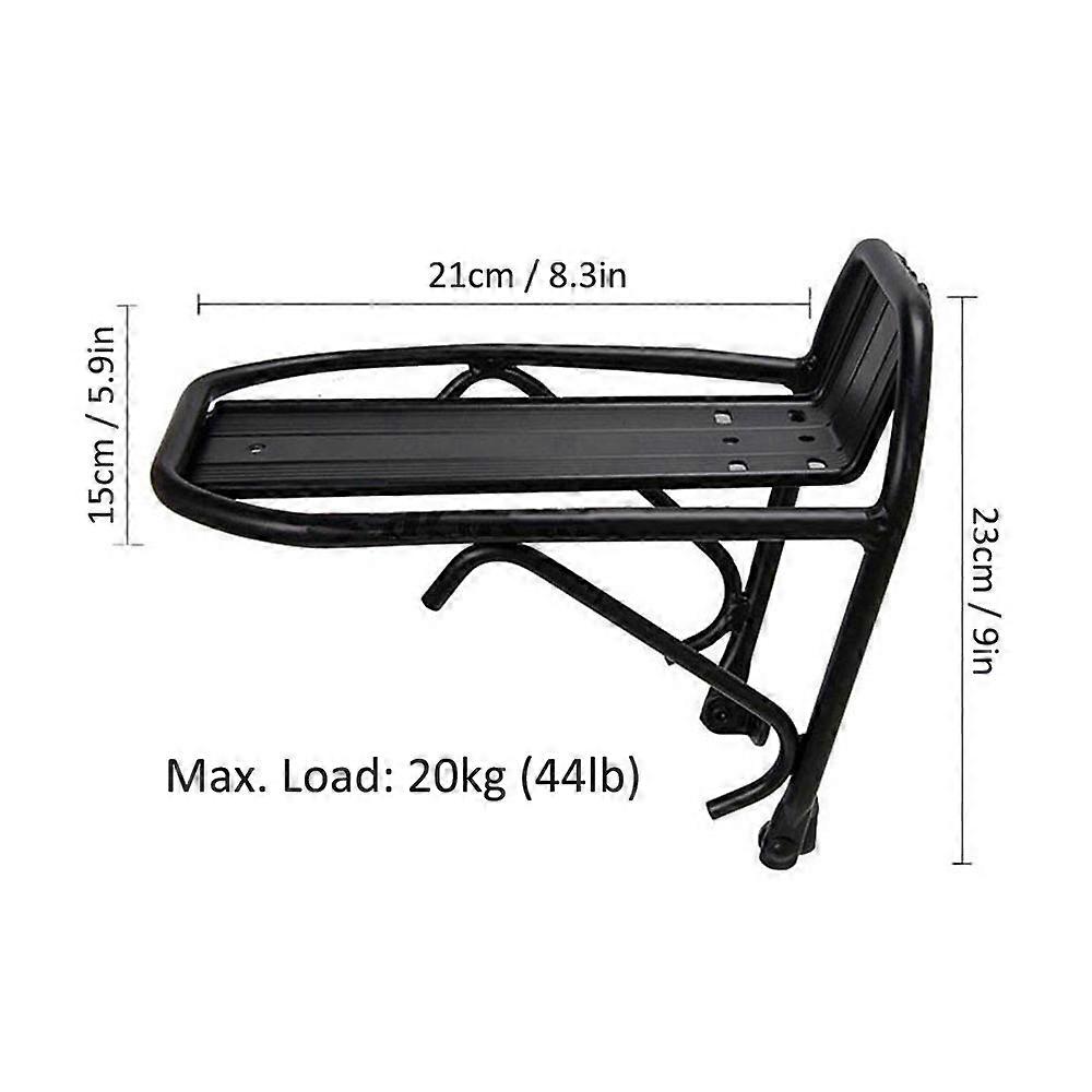 Bicycle Front Rack Aluminum Alloy Mountain Bike Cargo Luggage Carrier Rack Features: , sturdy aluminum alloy construction. Mounts onto the V brake screws on both sides of the front fork. Maximum load up to 20kg (44lb). Used to carry luggage, Not for pannier bags. Suitable for mountain bike, electric bike, road bike and folding bikes. Note: The fork clamp in the picture is not included. Specifications: Material: Aluminum alloy Dimension: Approx. 21 * 15 * 23cm / 8.3 * 5.9 * 9.0in Weight: 0.4kg / 14.1oz Package List: 1 * Bike Front Rack