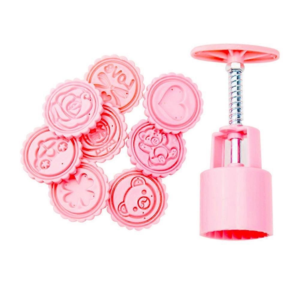 50g Round Pastry Cake Mold Cookies Mooncake Baking Mould 8 Pcs Cartoon Pattern