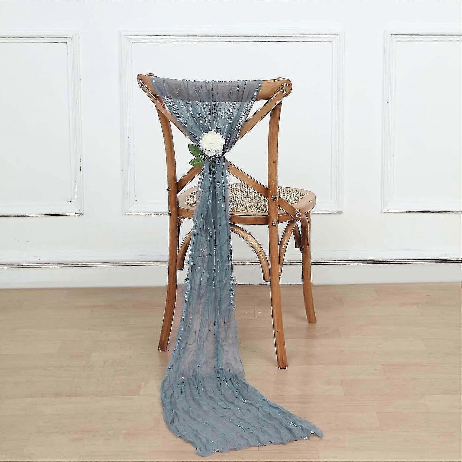 5 Pack | Dusty Blue Gauze Cheesecloth Boho Chair Sashes - 16" X 88