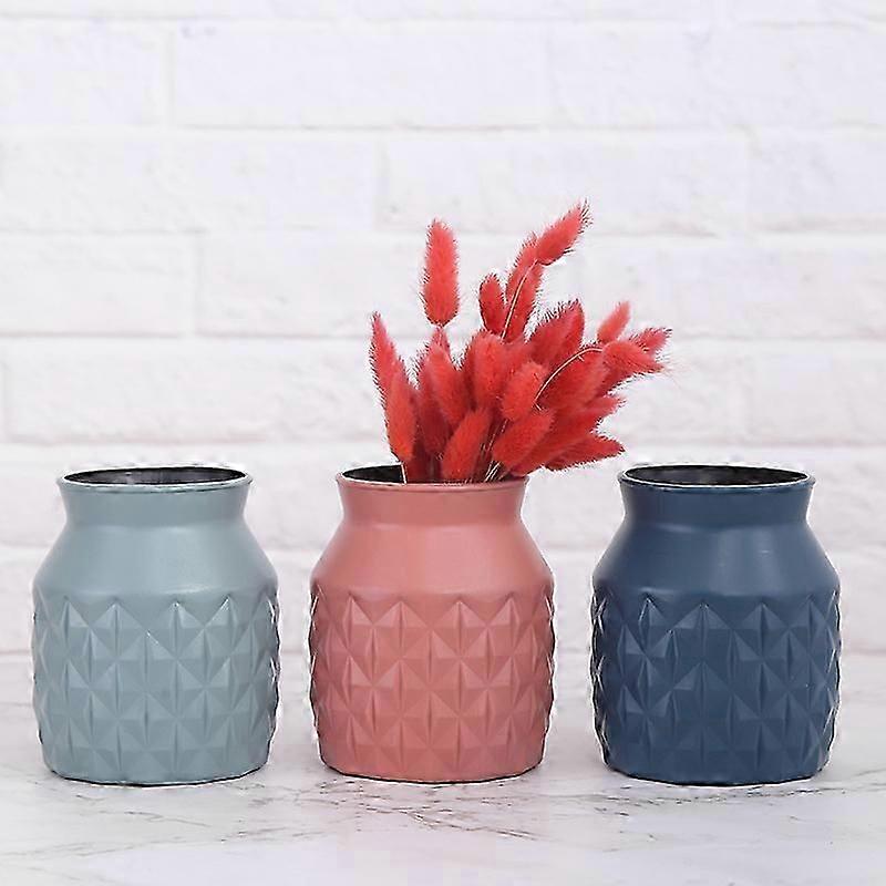 Nordic Style Imitated Ceramic Vase in Blue, Creative Plastic Decoration for UK Living Rooms
