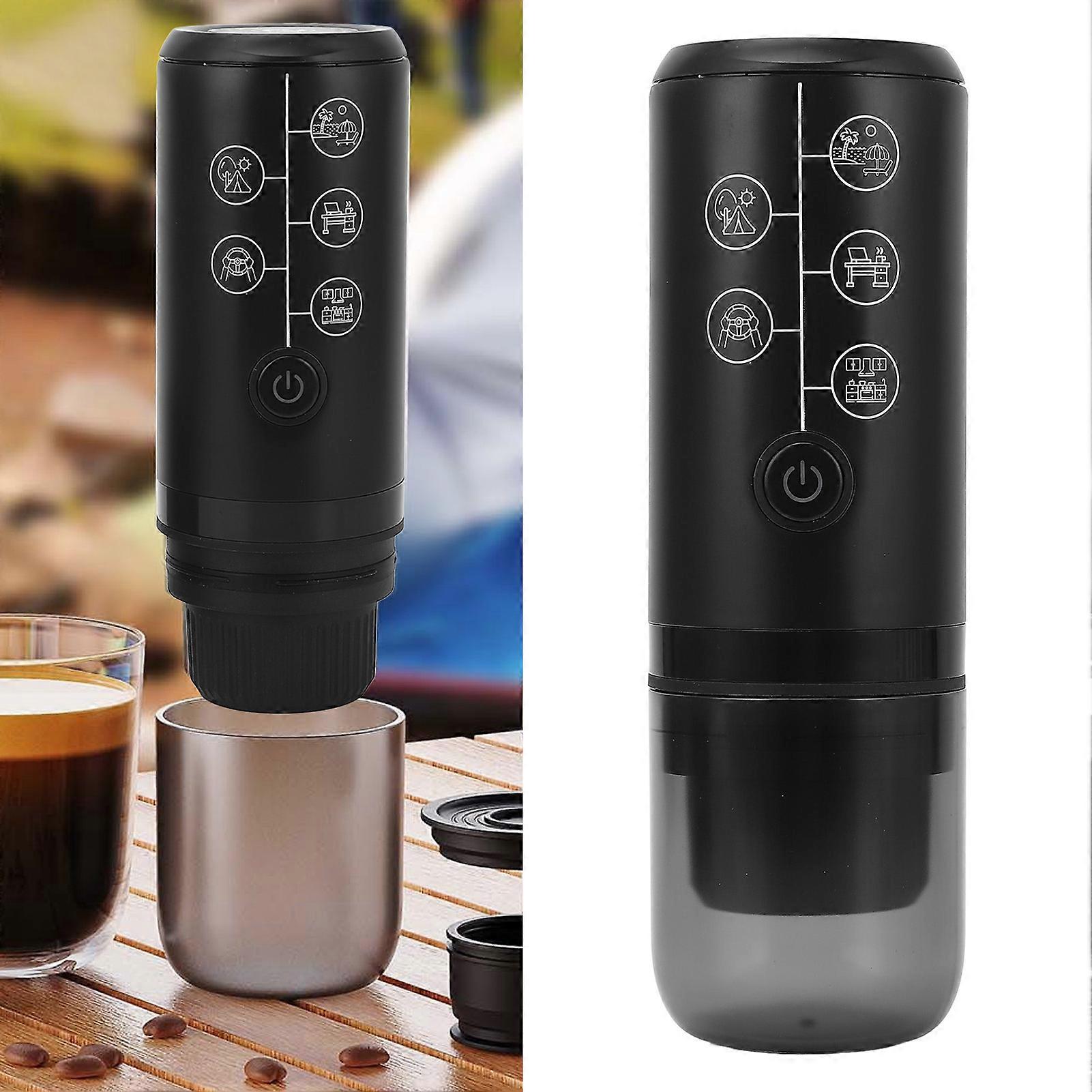 Portable Electric Coffee Machine Cordless Rechargeable 17 Bar Pressure Electric Capsule Coffee Maker for Outdoor Home Black Item Type: Portable Electric Coffee Maker Material: ABS, 304 Stainless Steel, Plastic Weight: Approx. 800g / 28.2oz Battery Type: Li Battery (Built in) Battery Capacity: 2600mah Power: 10W Pressure: 17Bar Water Tank Capacity: 120ml Cup Capacity: 250ml Product Size: Approx. 75x228mm / 2.95x8.98in