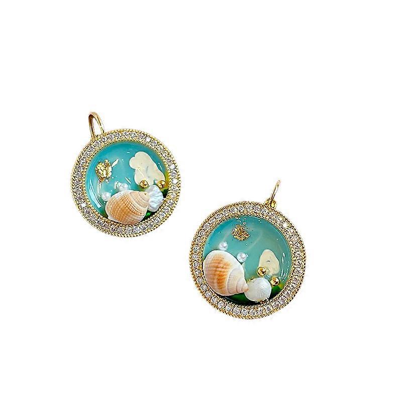 Brass Plated with 18 Carat Retro style Ocean Vacation Style Women's Earrings Beach Shell Decorative Earrings High Sense S925 Silver Pin Earrings-Shell