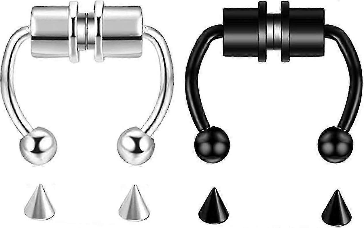 Magnetic Horseshoe Septum Nose Ring Set - Non Piercing Hoop Gift Pack of 2 Pcs