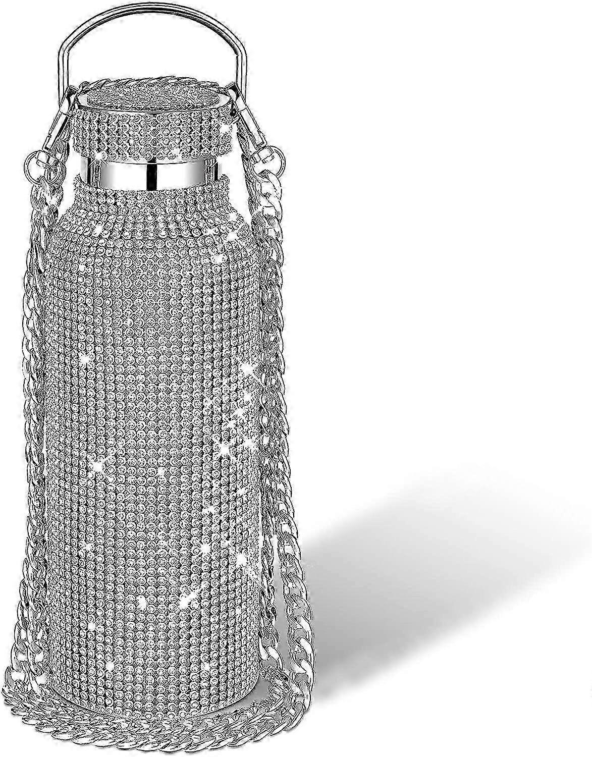 Delicate and practical: the diamond water bottle featuring a shiny appearance is not only beautiful and attractive but also very practical, which is a nice choice to keep ice drinks in summer or hot drinks in winter Shiny rhinestone design: the bling rhinestones on the refillable water bottle are delicately inlaid and no easy to fall off, the whole bottle body is shiny, the bottom groove design brings stable placement, and the beautiful chain makes it easy to carry, which is attractive and convenient Durable material: the insulated water bottle is made of 304 stainless steel, which is sturdy and durable, safe and reliable to use, reusable and easy to clean Please note that not soak the diamonds in water for a long time Chic gift: the 17 oz glitter water bottle can help you to hold tea, coffee, wine, milk, drinks and so on, can be applied as a cute gift for your kids, family, friends or love on birthday and festivals
