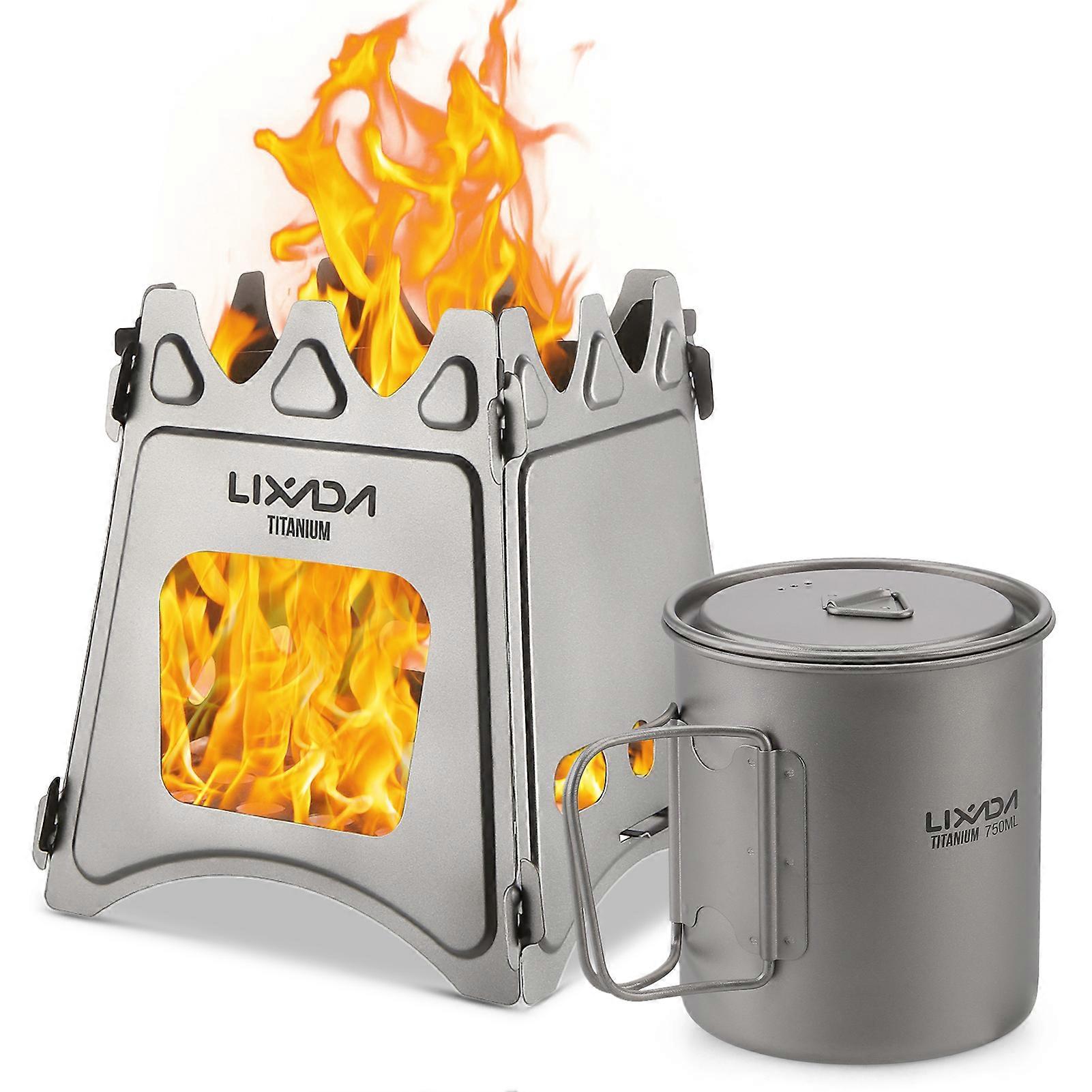 Compact Folding Titanium Wood Stove with 750ml Cup, 125x125x160mm