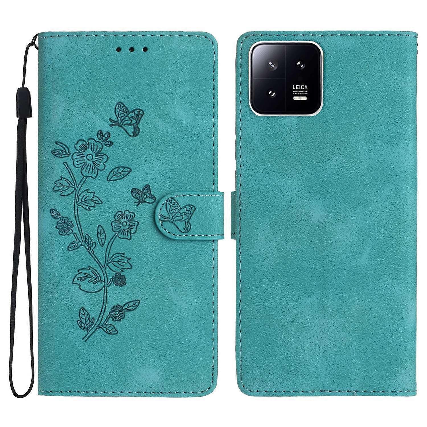 PU Leather Wallet Case for Xiaomi 13,Full Protection Flower Imprint Stand Phone Cover - Sky Blue