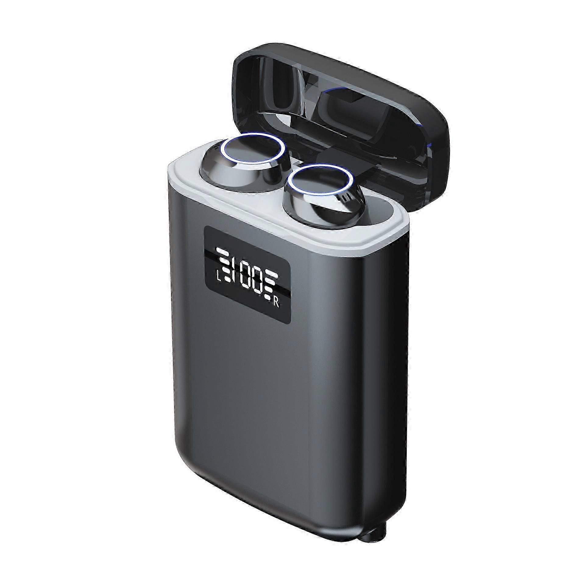 Bluetooth headset wireless binaural sports digital display English Bluetooth headset Describe: Two in one, it is a headset and a flashlight. The emergency power bank can charge the mobile phone. The loudspeaker is moving in the circle, and it is like being in the concert scene. IPX7 waterproof and sweatproof. Single and binaural switch freely. Ai smart, 3D . HiFi high-fidelity sound surging bass. Smart Compatible with Bluetooth connection. Parameter: Noise reduction version: CVC8.0 Working distance: connect within 10 meters Single ear capacity: 50mAh Charging compartment capacity: 4000mAh Charging compartment input current: 5V 1A Endurance time: about 220 hours in total (to be used with the charging compartment) Talk time: about 180 hours in total (need to be used with the charging compartment) Magnetic suction function: magnetic absorption nano charging Control method:operation Product size: 10.5x5.6x3cm Include: Headphonex1 Headphone charging compartmentx1 Manualx1 Charging cablex1