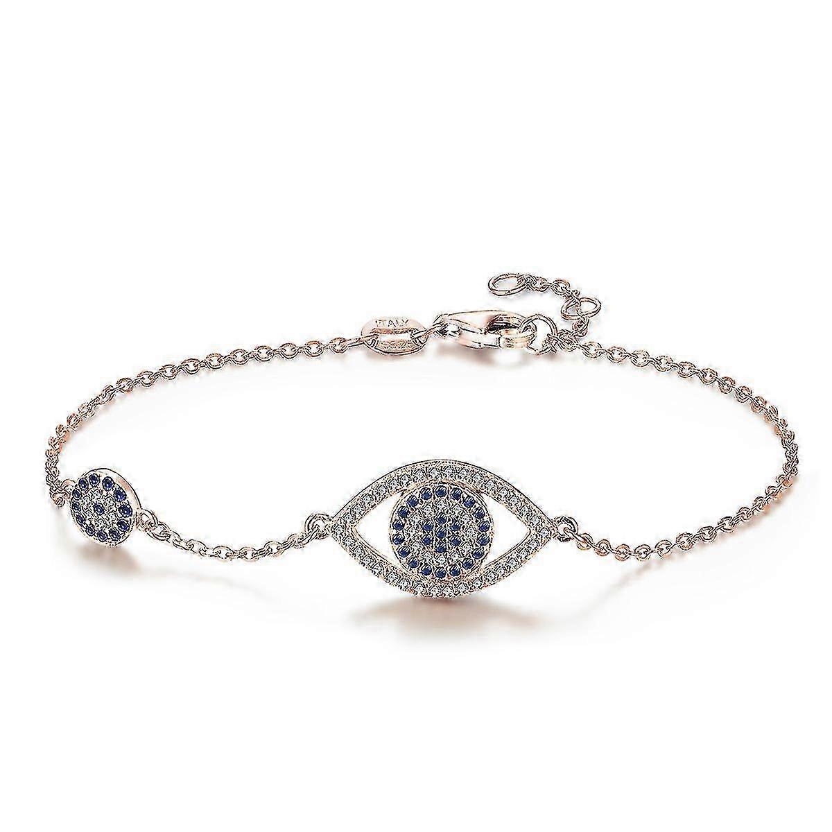 Blue Evil Eyes Link Bracelet - 925 Sterling Silver Cubic Zirconia Chain Adjustable to Rose Gold with Multi-Color Options