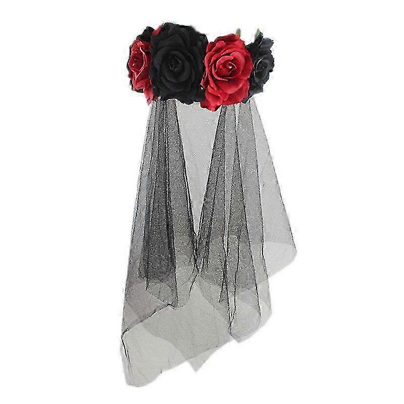 Halloween Hair Hoop with Flowery Veil Mesh & Party Accessories for Girls Kids