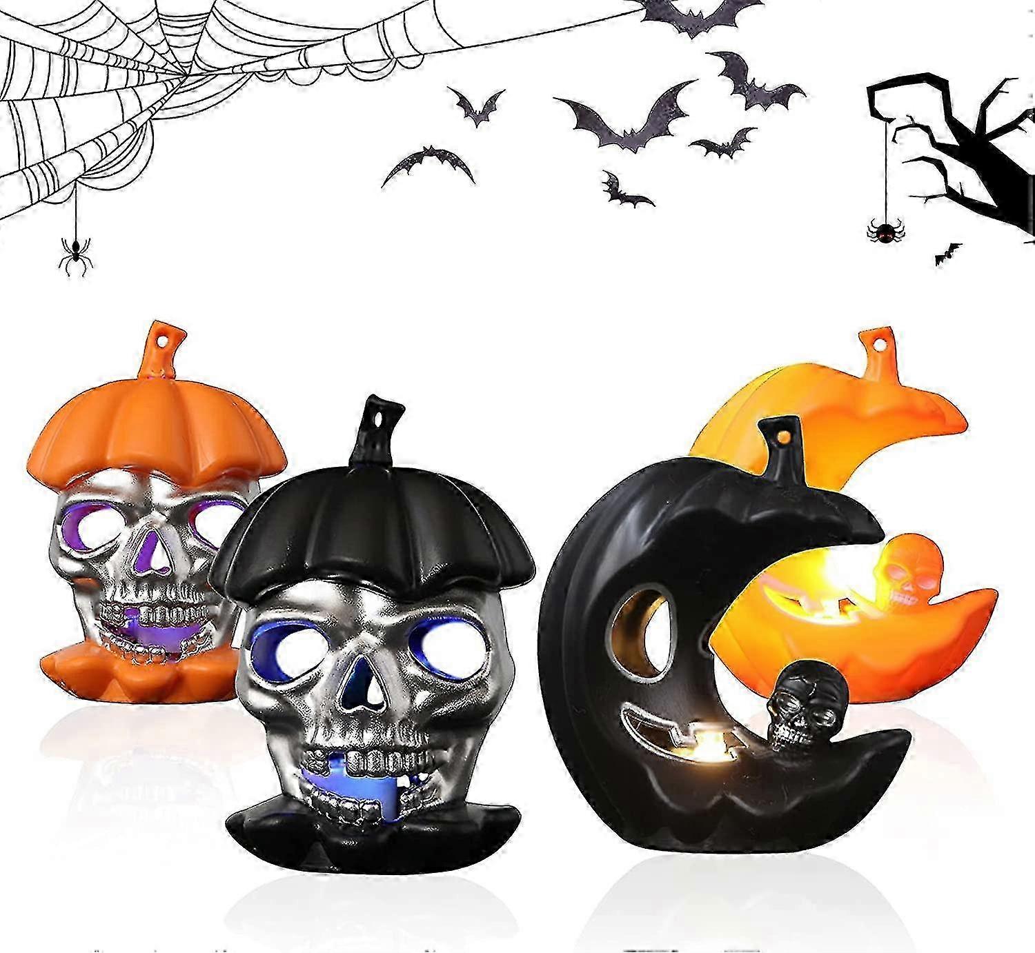 Light Halloween Candle Decorative Lights with Pumpkin Light and Halloween Heads and Skeleton for Halloween 4pccs
