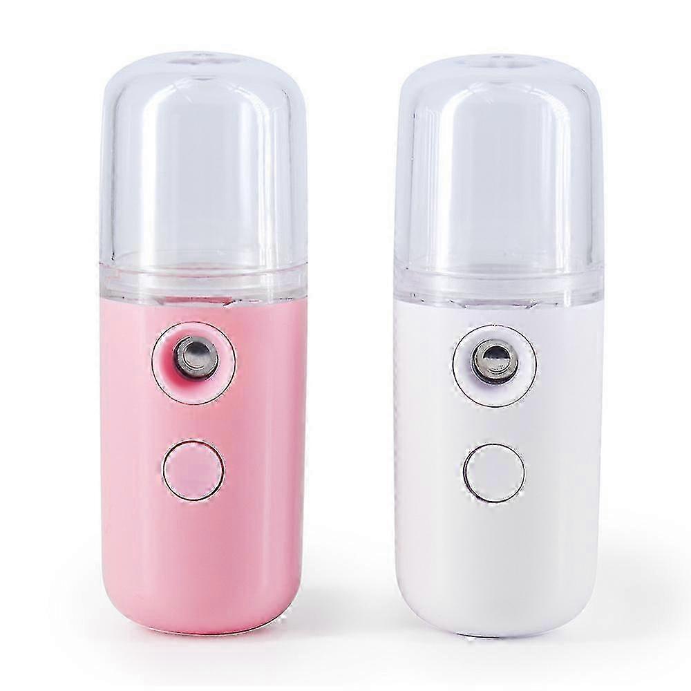 Portable Mini Face Mist Steamer with USB Charging for Facial Atomization and Lash Extensions (Pink & White, 2pcs)