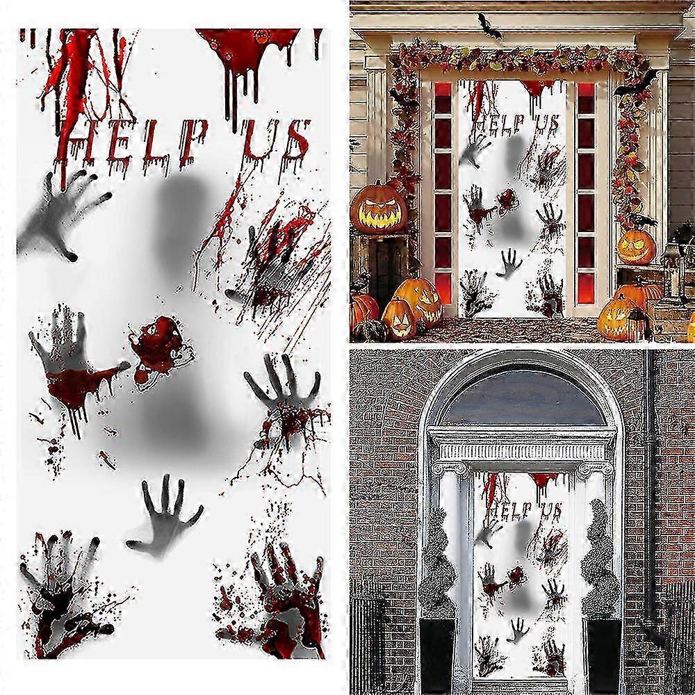 Halloween Door Horror Hanging Banner Window Curtain Cover for Party Home Decor