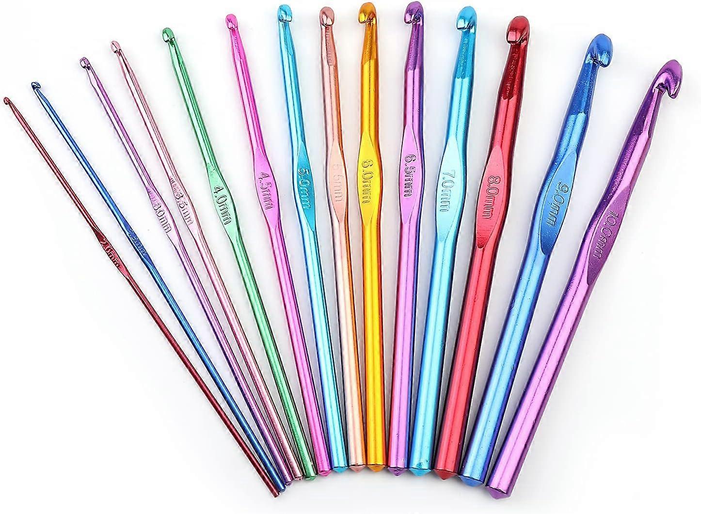 Crochet Hook Set, 14 Sizes Multicolor Aluminum Handle Crochet Hook, Colorful Ergonomic Handle Extra Long Crochet Needles for Crochet, Knitting Yarn (