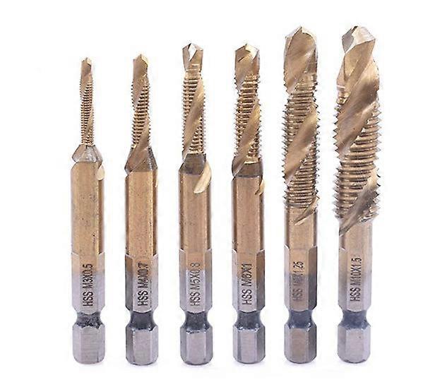 6Pcs Titanium Combination Tap HSS Bit Set 3 in 1 Tapping Screw Tap with 1/4 Inch Hex Shank Ephé