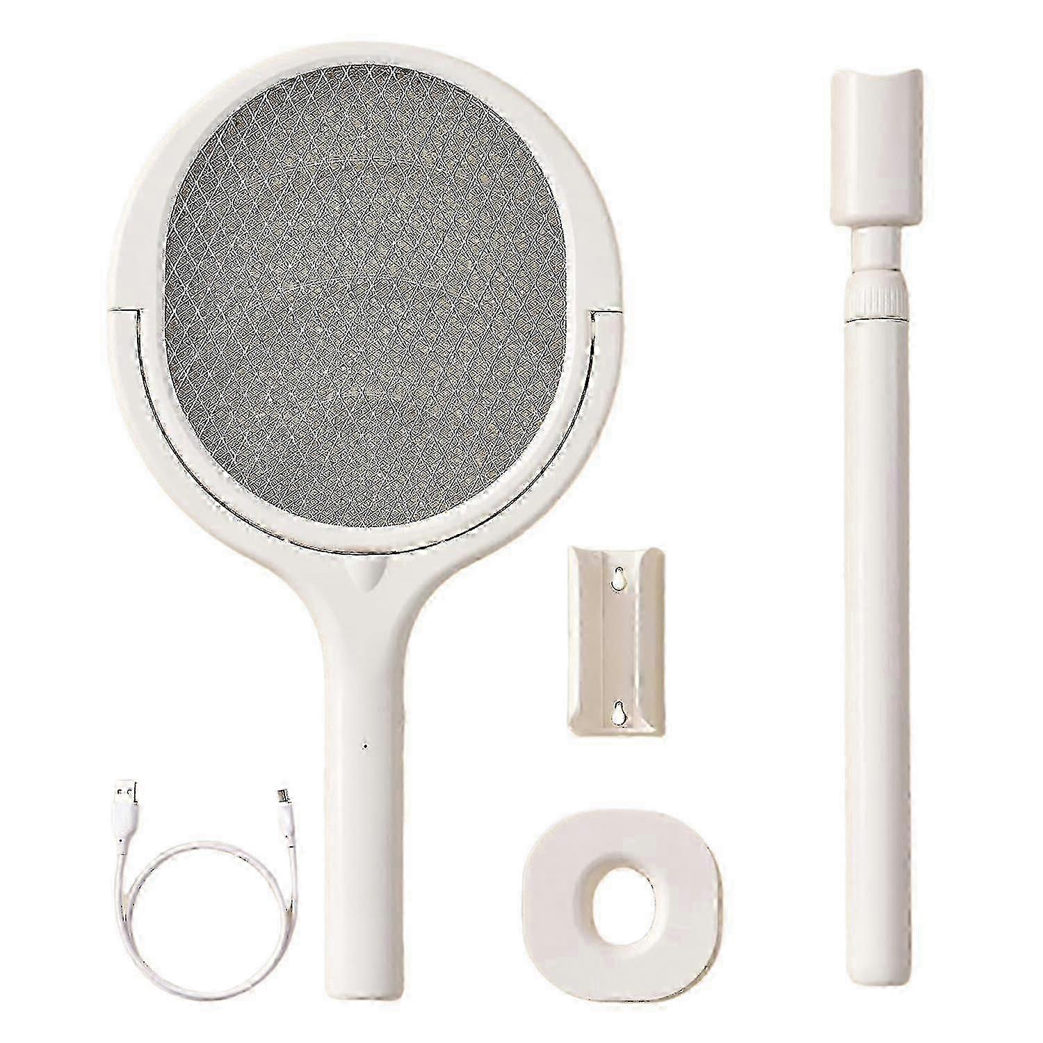 Patented Rotating Head DesignOur electric fly swatter features an innovative rotating head design that makes it easy to catch insects from various angles and surfaces, including walls. You can also lock the head of the electric fly swatter and swing it in the air to catch flying insects, just like a traditional electric fly swatter.Retractable Telescoping WandOur electric fly swatter is equipped with a retractable telescopic wand that can extend from 17 inches to 28 inches, allowing you to easily reach high places such as ceilings to ensure that no bugs escape your sight.Charging EfficiencyOur electric fly swatter comes with a sturdy 1200mAh rechargeable battery. Enjoy longer runtime and longevity, and convenient charging via the USB Type-C port.Powerful Pest Killer Releases a powerful 3500V electric shock to quickly destroy any flying insects, including flies, fruit flies, mosquitoes, mosquitoes, wasps, spiders, hornets or moths. Our electric fly swatter is designed with 3 layers of wire mesh to ensure safety and no impact even if accidentally touched.Handheld, Standing or Wall-MountedThe multifunctional electric fly swatter can adapt to any pest control scenario. Hold it to catch insects anywhere, stand it up to attract insects, or mount it on the wall for neat storage or as an efficient indoor bug zapper in your home.