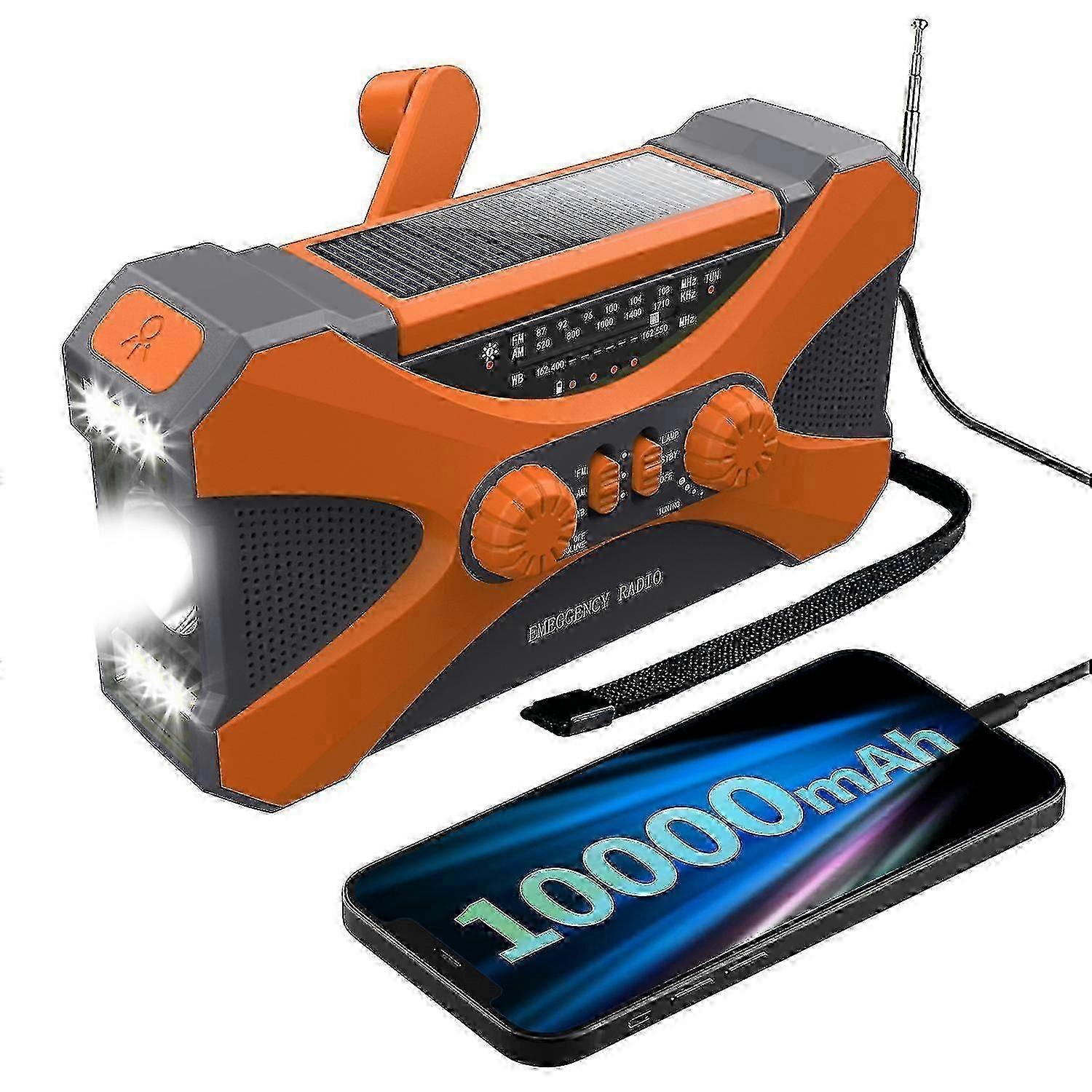 Portable Solar Hand Crank Radio with 10000mAh Battery, Am/fm/noaa Weather Alert and Phone Charger, Orange