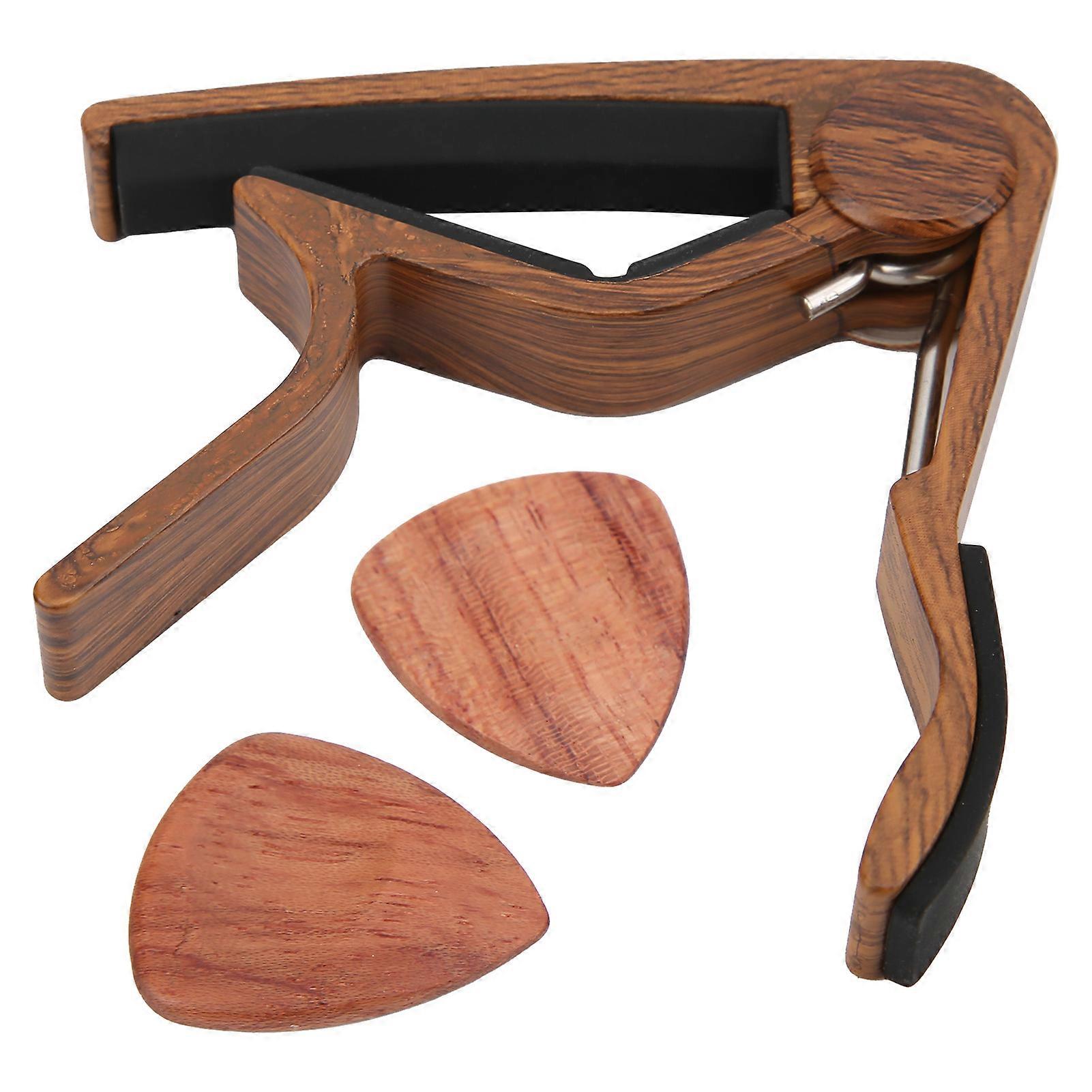 Acoustic Guitar Capo, Ergonomic Silica Gel Clamp, Solid Wood, with 2 Picks, for Bass, Ukulele, Violin