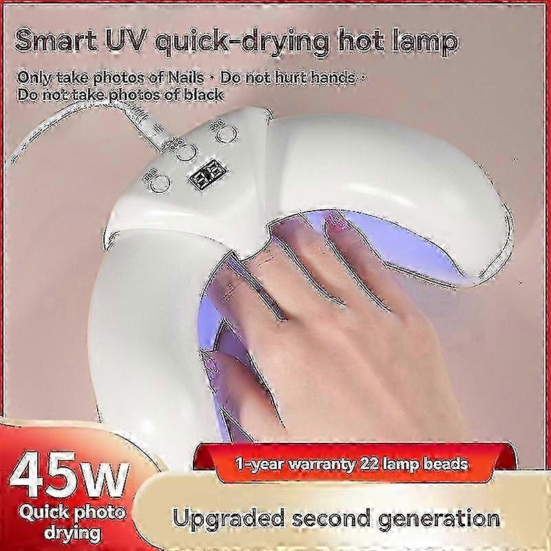 Introducing our new 45W dual-source LED nail lamp This fast-drying crescent-shaped manicure lamp features 22 LED beads and a U-shaped design for optimal coverage. With its intelligent sensor and foldable body, it's perfect for salon professionals and DIY enthusiasts alike. With three timing settings and quick gel curing capabilities, achieving salon-quality nails has never been easier. Upgrade your nail routine with our innovative and convenient LED nail lamp today