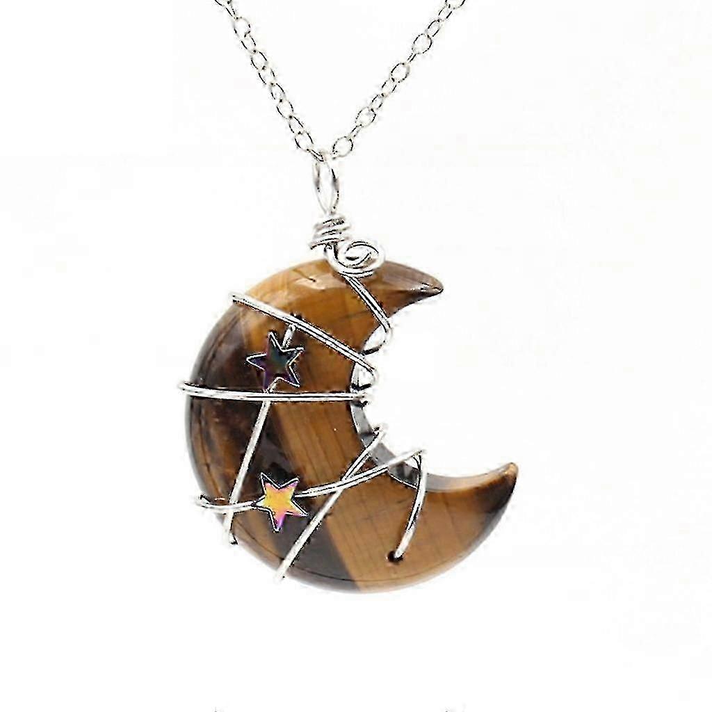 Moon Necklace: Natural Gemstone Pendant with Wire Wrap Clavicle Chain Jewelry