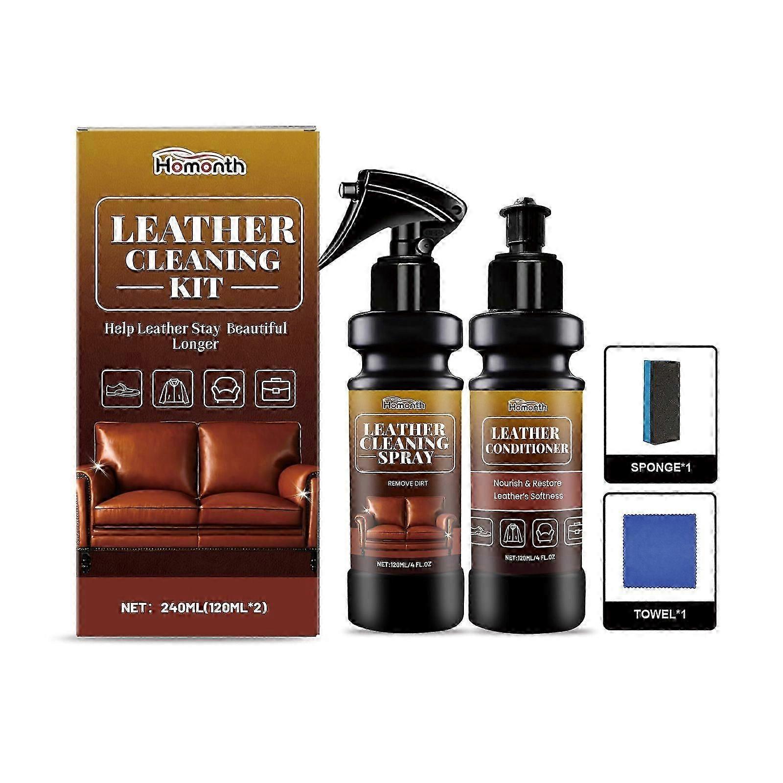 Leather Cleaning Care Kit - Stain Removal Spray, Nourishing Conditioner, Shine Restoration, Anti-stain Protection