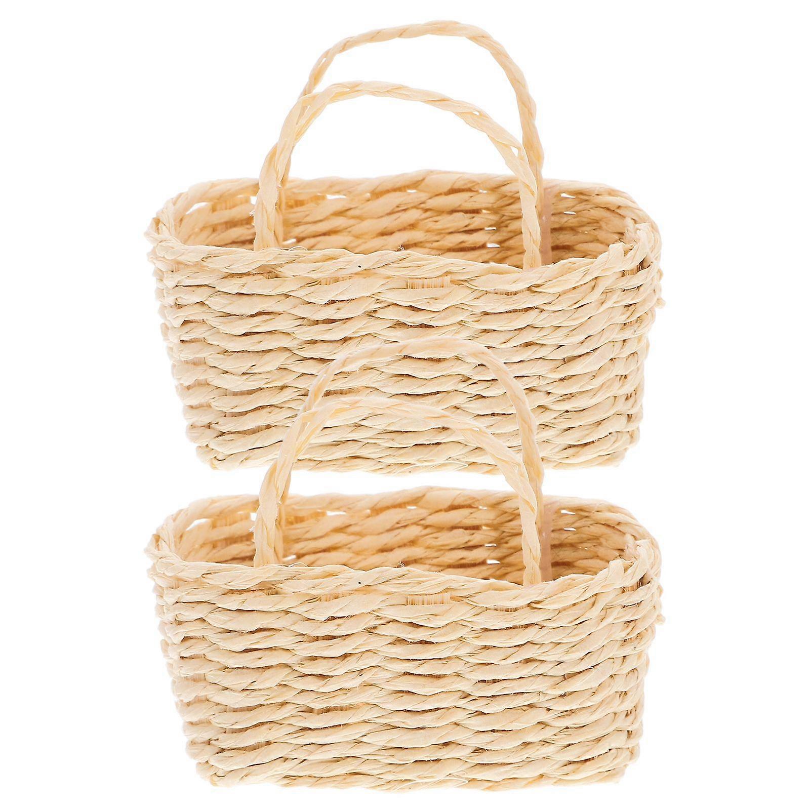 2pcs Miniature Dollhouse Woven Basket 1:12 Scale for Dollhouse Scenes and Fairy Garden Accessories Mini Raffia Baskets with Handles for Storage Decora