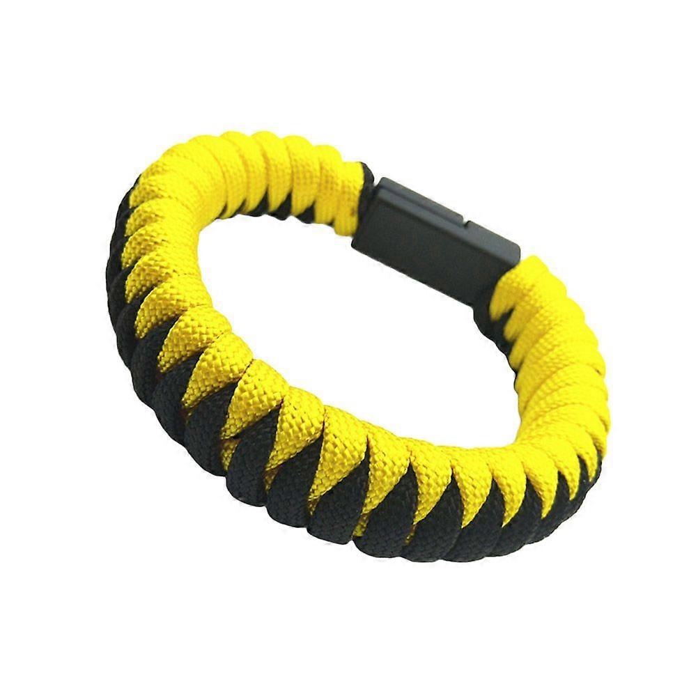 22CM Creative Umbrella Rope USB Type C Data Sync Cable Braided Bracelet Wristband Style Charging Cable (Black and Yellow)