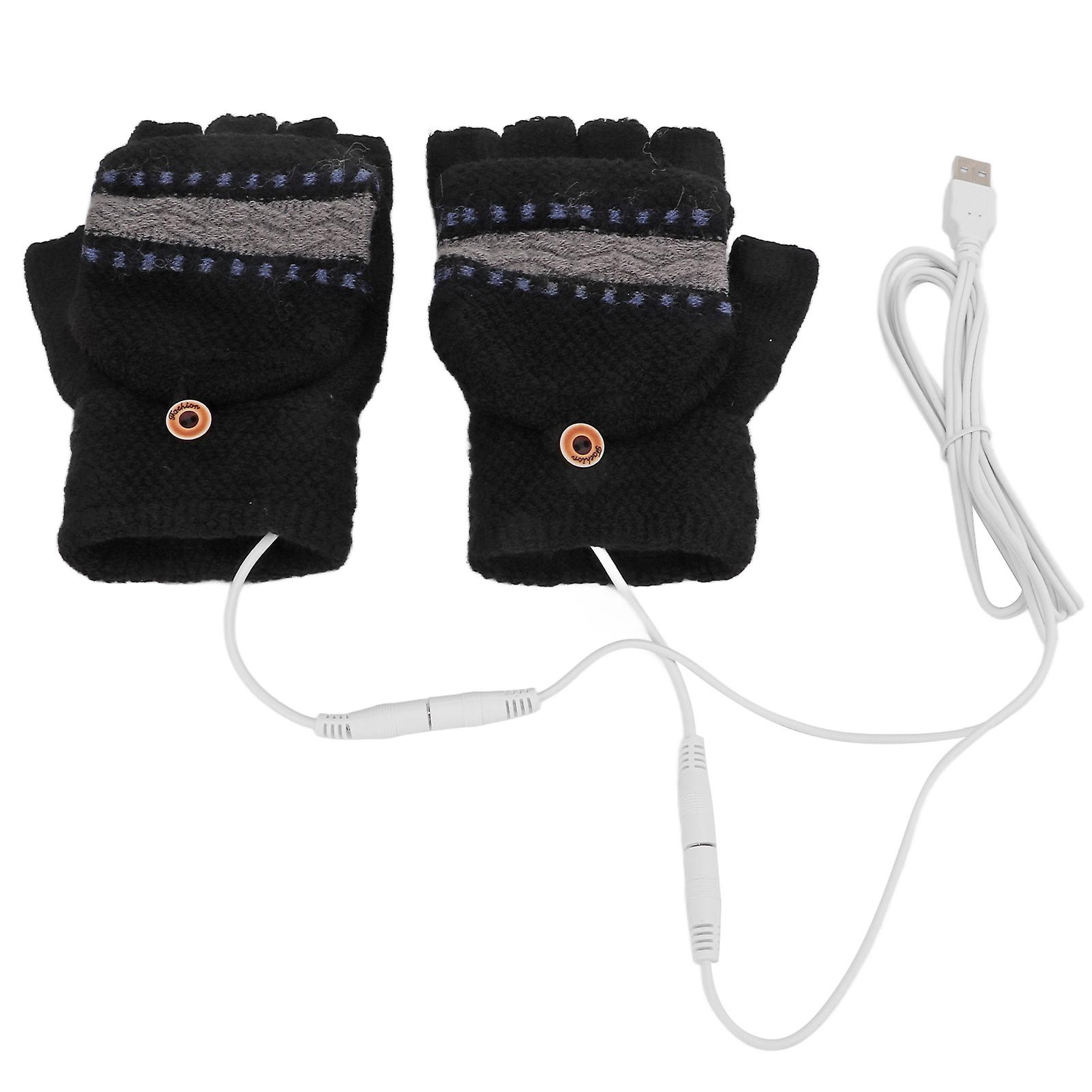 1Pair Winter Gloves Knitting Fingerless Hand Warmers Electric Warming Gloves for Men Typing Sports OutdoorBlack