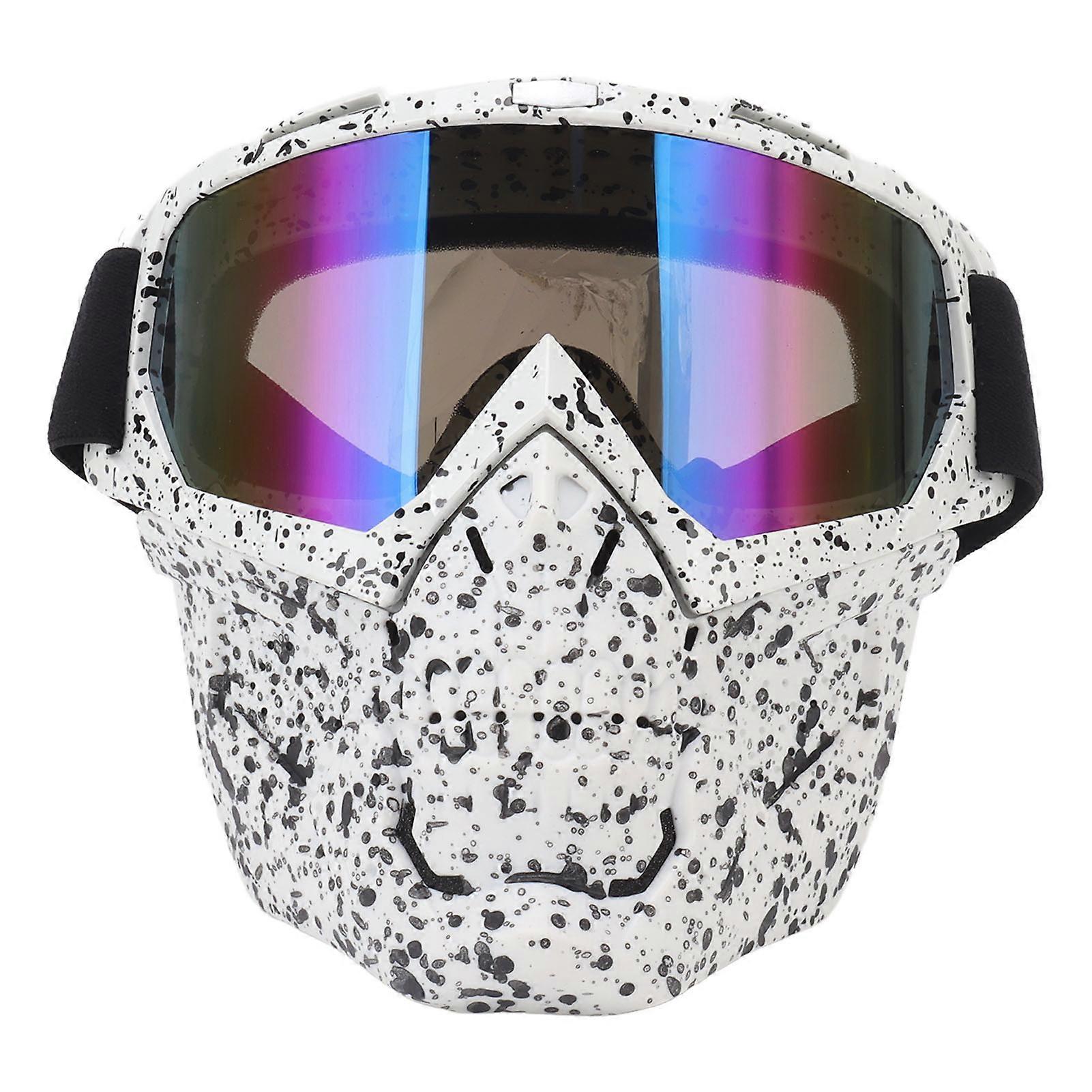 Off Road Skull Gooles Mask PC Sponge Detachable Adjustable Motorcycle Protective Mask For Off Road Riding Hiking Black Spots White Frame Colorful