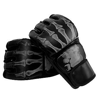 Black Skeleton Design Boxing Gloves Half Finger Thickened Punch Mitts Durable Compact Fitness Combat Training Gloves for Sandbags Fighting Sparrin