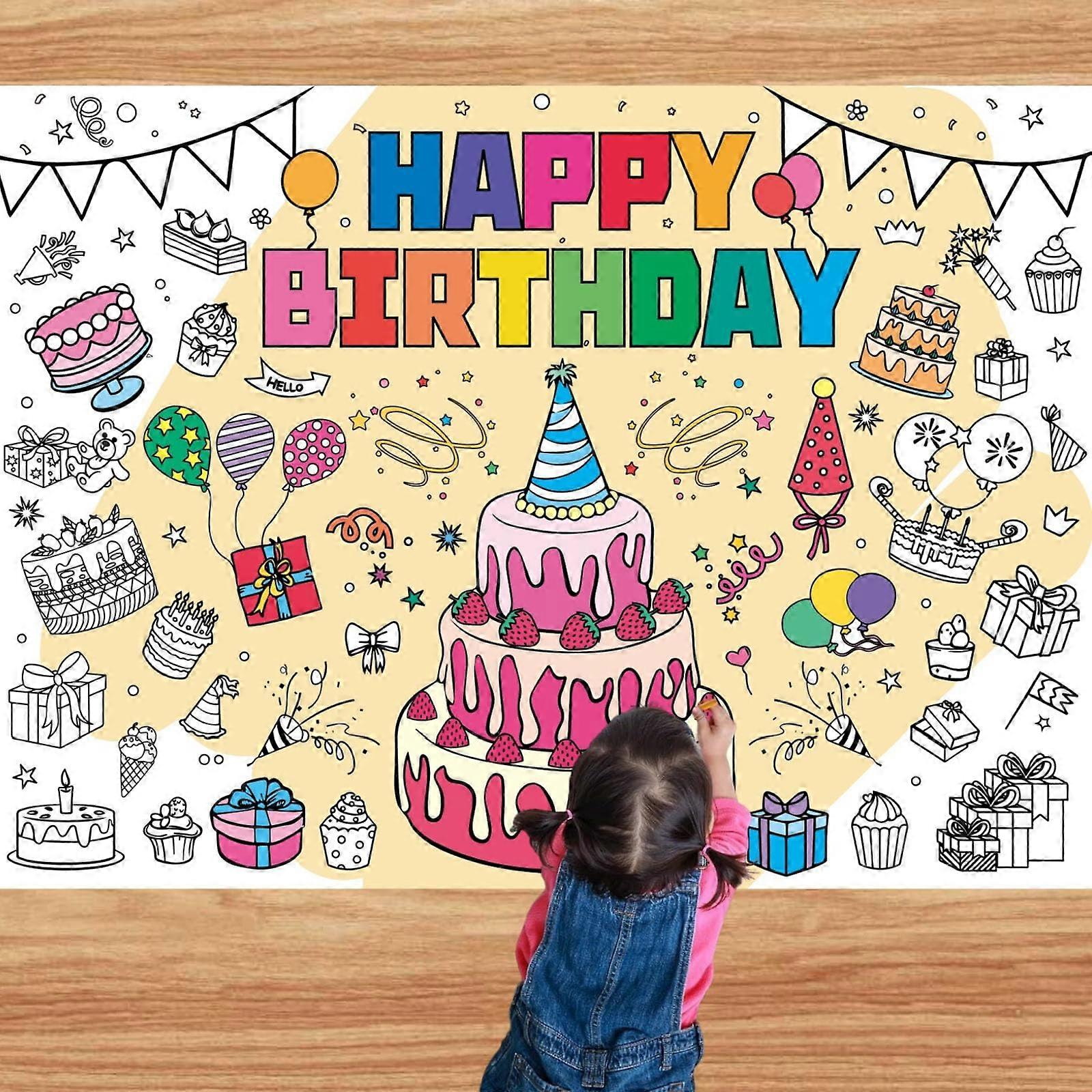 Children's Colouring Tablecloth 80 X 110 Cm For Colouring Children's Birthday Tablecloth Birthday Party Decoration