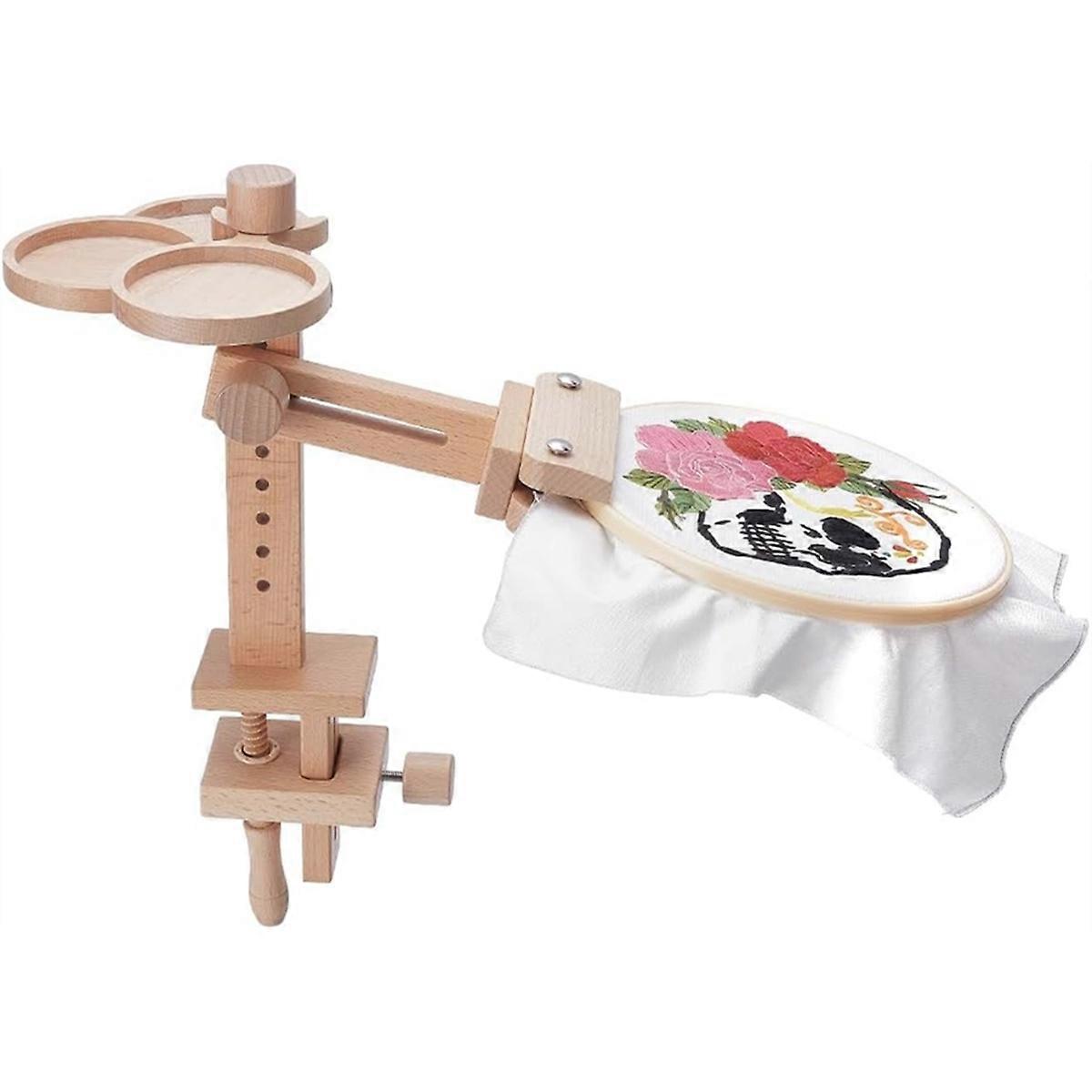 Beech Wooden Embroidery Hoop Holders Stand Adjustable Stitching Stands Hands Sturdy Beech Wood for