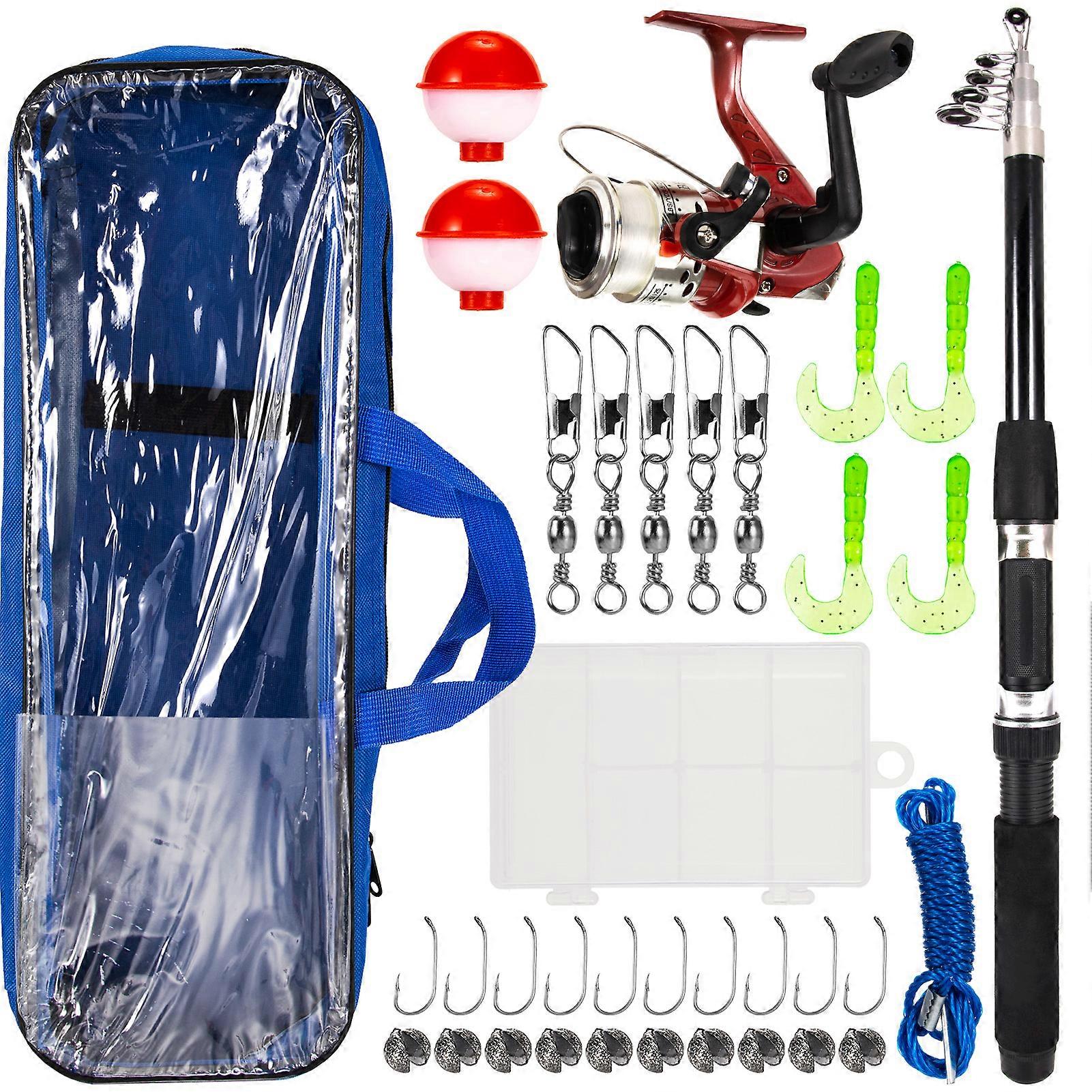 Fishing Rod and Reel Combo with Carry Case 36pcs Fishing Tackle Set Telescopic Fishing Rod Pole with Spinning Reel Lures Float Hooks Accessories This fishing tackle set includes a telescopic fishing rod, spinning reel and various fishing accessories, great gift for anglers. Features: 36pcs fishing tackle set includes 1x fishing rod, 1x spinning reel, 2x floats, 4x soft lures, 10x split shots, 1x leash, 5x barrel swivels, 10x hooks, 1x tackle box, 1x carry bag. 2.1m (82.7 inch) telescopic fishing rod retracts to 40cm (15.7 inch) for convenient portability. Spinning reel features 5.2:1 gear ratio for smooth performance, handle for easy storage. Transparent tackle box with many compartments to keep various fishing accessories organized. (The color of the accessories are sent randomly.) Carry bag for easy storage and carrying, great gift for amateur and professional anglers. Specifications: Fishing Rod: Length: 2.1m Retracted Length: 40cm / 15.7in Sections: 6 Top Diameter: 2mm Butt Diameter: 17.5mm Weight: 135g / 4.8oz Fishing Reel: (color by random) Gear Ratio: 5.2:1 Ball Bearing: 1 Line Capacity: 0.18mm/240m; 0.20mm/200m; 0.25mm/125m Weight: 152g / 5.4oz Package Size: 47 * 16 * 7cm / 18.5 * 6.3 * 2.8in Package Weight: 520g / 1.1lb Package List: 1 * Fishing Rod 1 * Fishing Reel (color by random) 2 * Float 10 * Split Shot 1 * Leash 4 * Soft Lure 5 * Barrel Swivel 10 * Hook 1 * Tackle Box 1 * Carry Bag