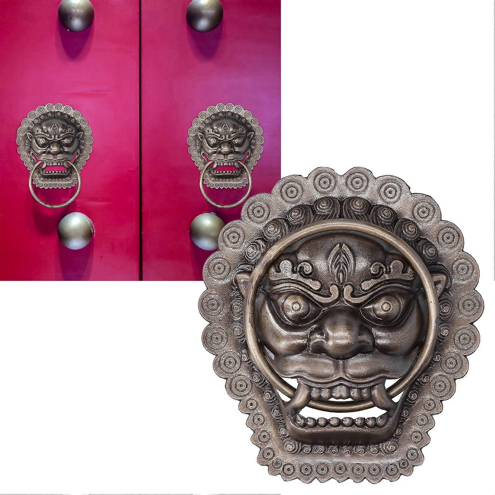 Chinese Style Door Knocker Antique Animal Head Door Ring Wooden Door Pull Ring Replacement Parts Item Type: Animal Head Door Knocker Material: Brass Weight: Approx. 853g/30.1oz Product Size: Approx. 26 x 19cm/10.2 x 7.5in Color: Bronze Scope of Application: Double Door, Wooden Door Courtyard, Etc.
