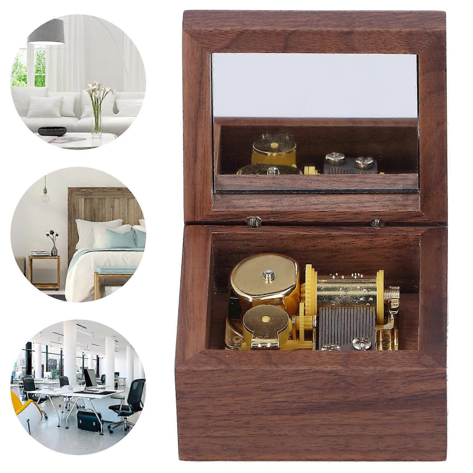 Walnut Wood Music Box Clockwork 7.5x6.5x5cm Handicraft Gift