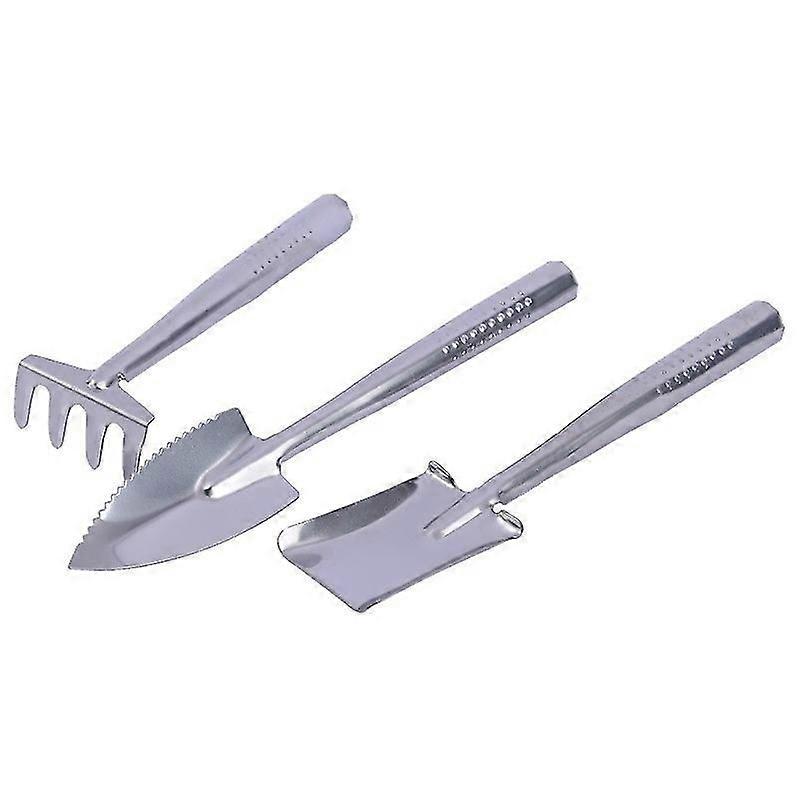Fully equipped Each set includes 3pcs tools, shovel, spade and rake, small and affordable, necessary little helper for garden lovers, and brings a lot of convenience to use. all pot tools are made of high quality and environmentally friendly material, safe and durable to use. Mini Size Apply This gardening tools set is suitable for office and home gardening potted plants, transplanting seedlings, weeding and so on. Track nature This gardening tools set is a best gift for your kids Children who are three or more years old can train to pursue a green life. quantity of delivery:1set color of product:silver