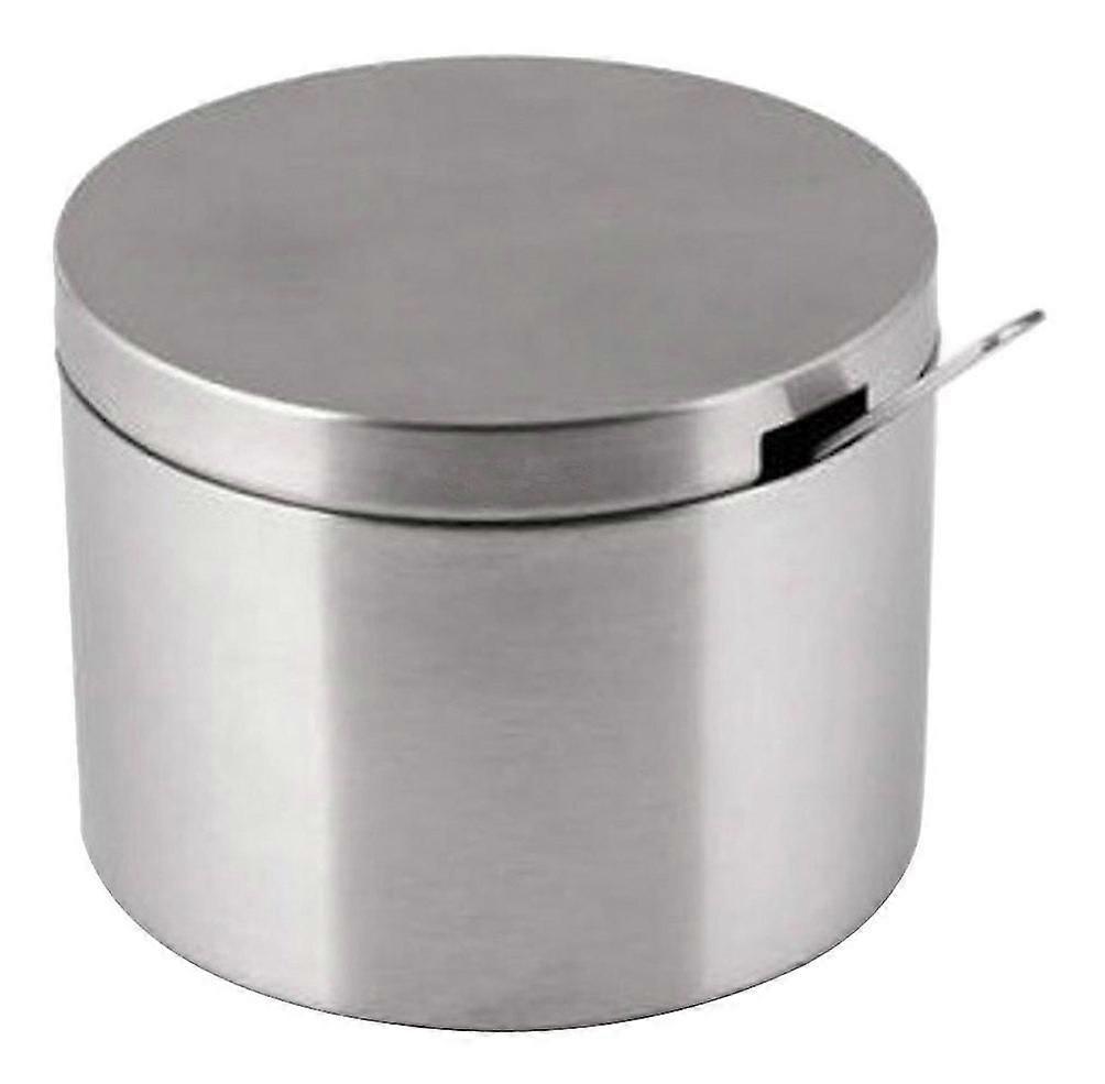 Sugar Bowl Stainless Steel Sugar Bowl with Lid and Spoon Stainless Steel Spice Jar Kitchen Utensils Spice Box (Color: Silver) (1 piece)