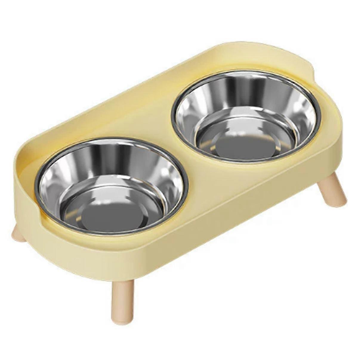 Elevated Cat Bowl,Raised Cat Food and Water Bowl Set for Indoor Cats, Splash Proof with 2 Stainless Steel Pet Food Bowls Yellow