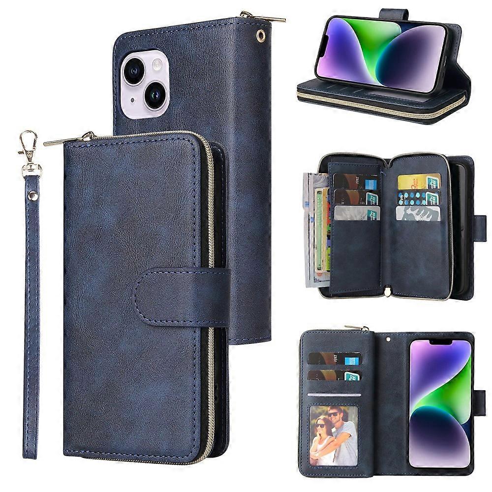 Compatible For iPhone 14 Plus Case Zipper Pocket TPU+PU Leather Phone Stand Cover