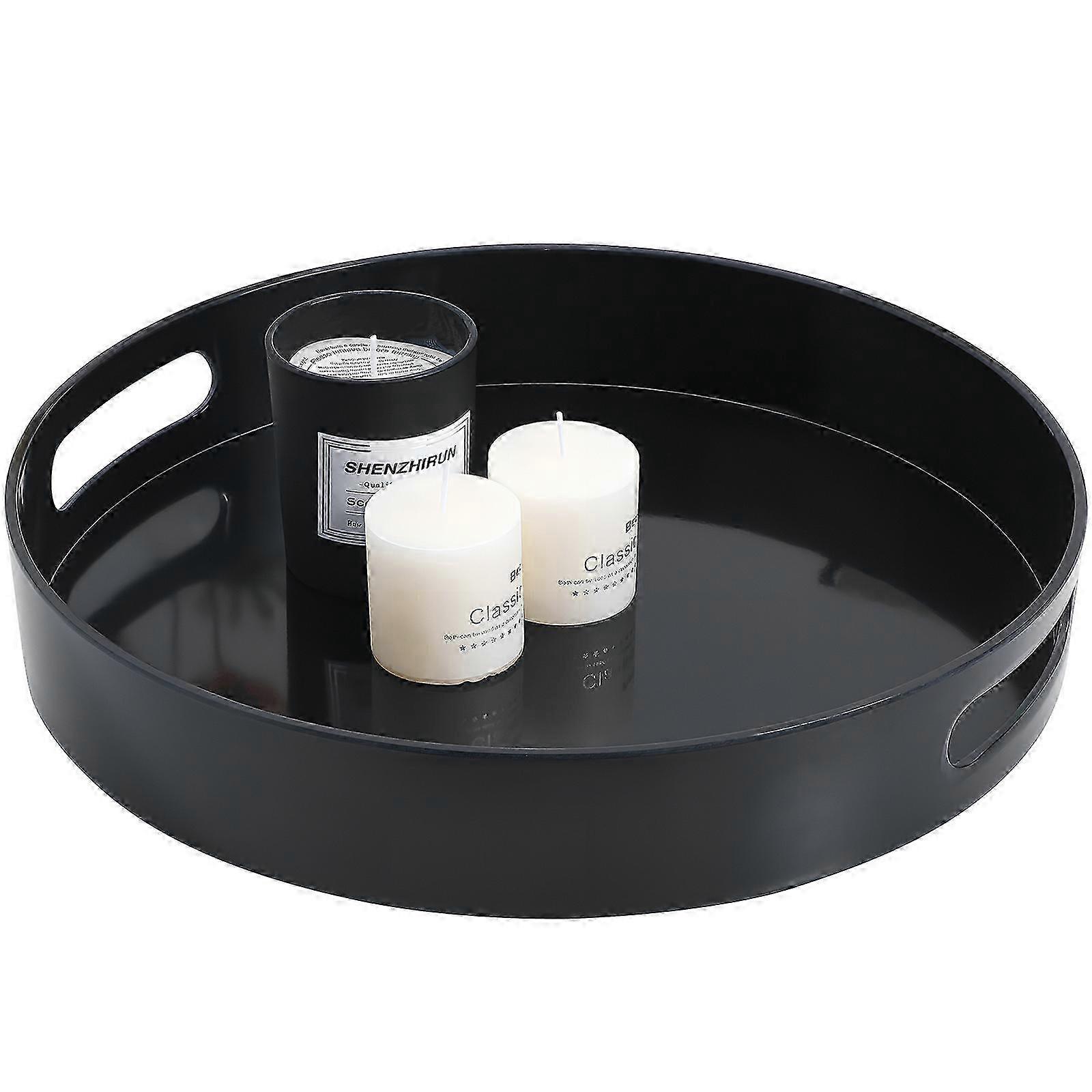 Black Round Serving Tray 35x35cm Plastic Decorative Plate for Home Use Kitchen Dining Organizer