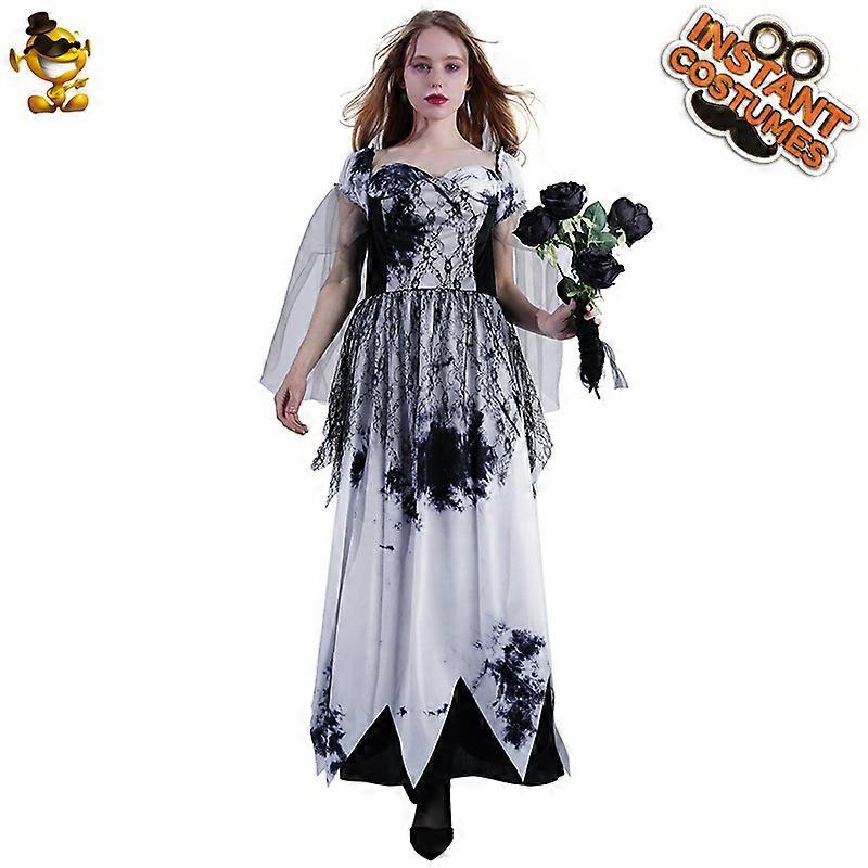 Halloween Adult Female Zombie Bride Party Cosplay Costume, Big Female Zombie Bride Performance Costume
