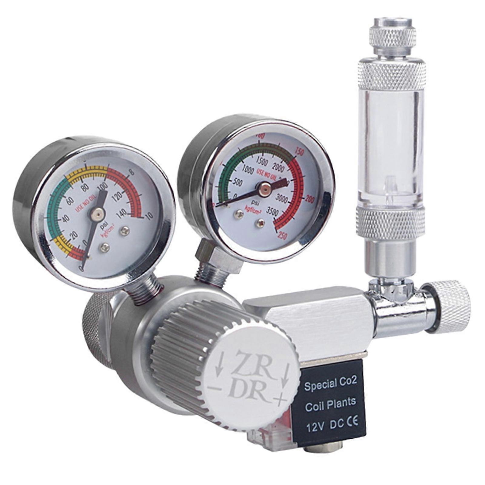 12V Output Voltage Aquarium CO2 Regulator Adjustable CO2 Pressure Regulator with Solenoid Large Double Pressure Gauge Bubble Counter & Check Valve for CO2 Aluminun Cylinder W21.8 Interface This CO2 regulator is specifically designed for the CO2 generator system. Install this CO2 pressure regulator that needs a wrench. Place the washer ensure a tight seal. Replace washers regularly recommended. It is easy, safe, and economical. Features: Be made of aluminum alloy. It is strong, durable, and efficient. Well-sealed caps, leak-proof, non-deformed, never loose. Install this CO2 pressure regulator that needs a wrench. Place the washer ensure a tight seal. Replace washers regularly. Professional pressure gauge for pressure watch. The high-pressure gauge shows cylinder pressure, low pressure gauge shows output pressure. Large double pressure gauge: Safe and with long service life, regulated output, stable operation. Pressure reducing valve: High-pressure input, output pressure can be adjusted between 0-6kg. Solenoid valve: To control the on and off of the CO2 generator system using a timer(not included). 100-240V wide voltage input, DC 12V output, the solenoid valve is 12V noiseless version. Bubble counter with a check valve: Flow-rate of CO2 gas indication device and prevent water flow back into the bottle. Precision fine-tuning, achieving 2-3 seconds 1 bubble. Any problem, please contact our store without hesitation. Honor to serve you! Specification: Name: Aquarium CO2 regulator Main material: Aluminum alloy Color: Silver Optional interface type: CGA320(US); W21.8(EU) Input voltage: 100-240V Output voltage: 12V Size: Total height 130mm; Double watch diameter: 40mm Package Information: Package size: 16.5*13.5*11cm Package weight: 600g Gift Box Packaging Package List: 1* Aquarium CO2 regulator 1* Wrench 1* Instruction manual 1* Other parts