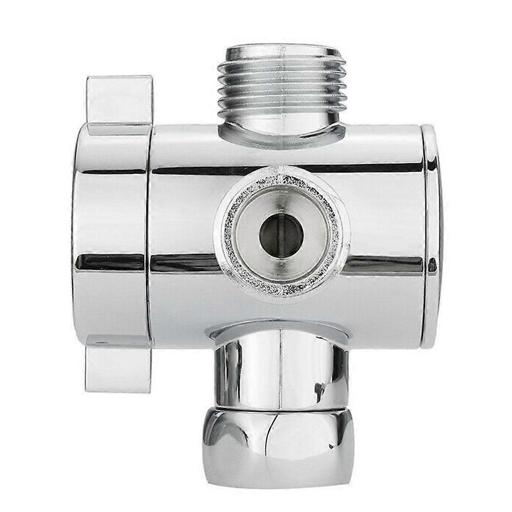 1/2 Inch 3-Way T-adapter Bath Shower Head Arm Mounted Diverter Valve Tap The shower diverter is 3-way adapter, 1 inlet, 2 outlet, easy to install. Features: Adjustable shower arm mounted, easy to install. Universal showering component- 3 way diverter. 1/2" IPS female inlet, 1/2" IPS male outlet, 1/2" IPS male outlet. Chrome finish, not easy to rust. Works with handheld shower head. Specifications: Material: ABS Finish: Chrome finished Item Size: 71.5 * 71.5 * 40mm / 2.81* 2.81 * 1.57in Package Weight: 66g / 2.33ounces Package Size: 75 * 75 * 65mm / 2.95 * 2.95 * 2.56in Packing List: 1 * Shower Diverter